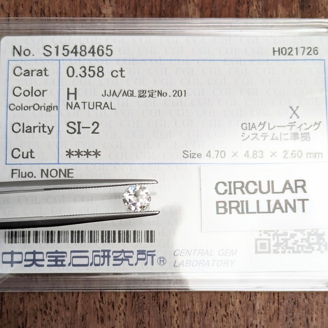 【DiamondAntique】をご覧いただきましてありがとうございます。 サーキュラーブリリアントカット ダイヤルースのご紹介です。 重量(Weight):0.358ct サイズ(measurement):4.70-4.83×2.60mm 付属品:H SI2 CIRCULAR BRILLIANT 中宝研ソーティング 品番:PRO208291 ☆ひとこと☆ アンティークカットと現代のモダンカットのちょうど狭間に位置するヴィンテージカットの『サーキュラーブリリアントカット』。未完成なイメージもあるかと思いますが、正直、肉眼での輝きはPOORやFAIRのカット評価のものよりも良いものもたくさんあります。今回も、その1ピース。外形に歪みは感じられず、「SI-2」の傷気も端の方にあるレリーフ薄めのフェザーでガッツリ系ではなく、かなり透明度、輝きも強い美しい1ピースです。 届きましてから気になる点がございましたらご連絡ください、出来る限り対応いたします。 ご購入後、できるだけ早く発送いたしますが、出張等で発送が遅れる場合がございます。ご了承ください。 ダイヤモンドに付属するソーティング袋は業者間取引に使用される簡易レポートですので、傷んでいる場合もございます。別途料金で鑑定書を作成する事も出来ますのでご検討ください。 鑑定書作成には少々お時間をいただきます。時期によって多少変わりますので、お急ぎの方はご相談ください。