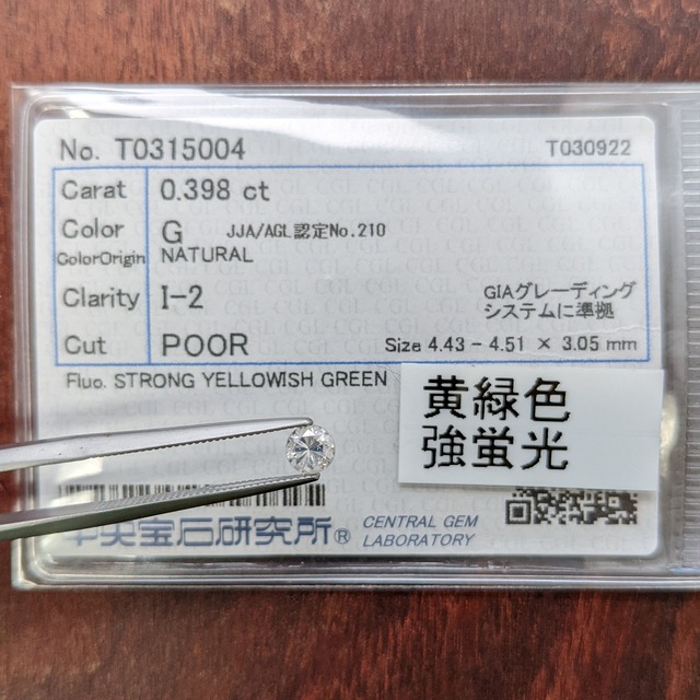 ストロングイエロイッシュグリーン蛍光ダイヤルース【0.398ct】PRO203941