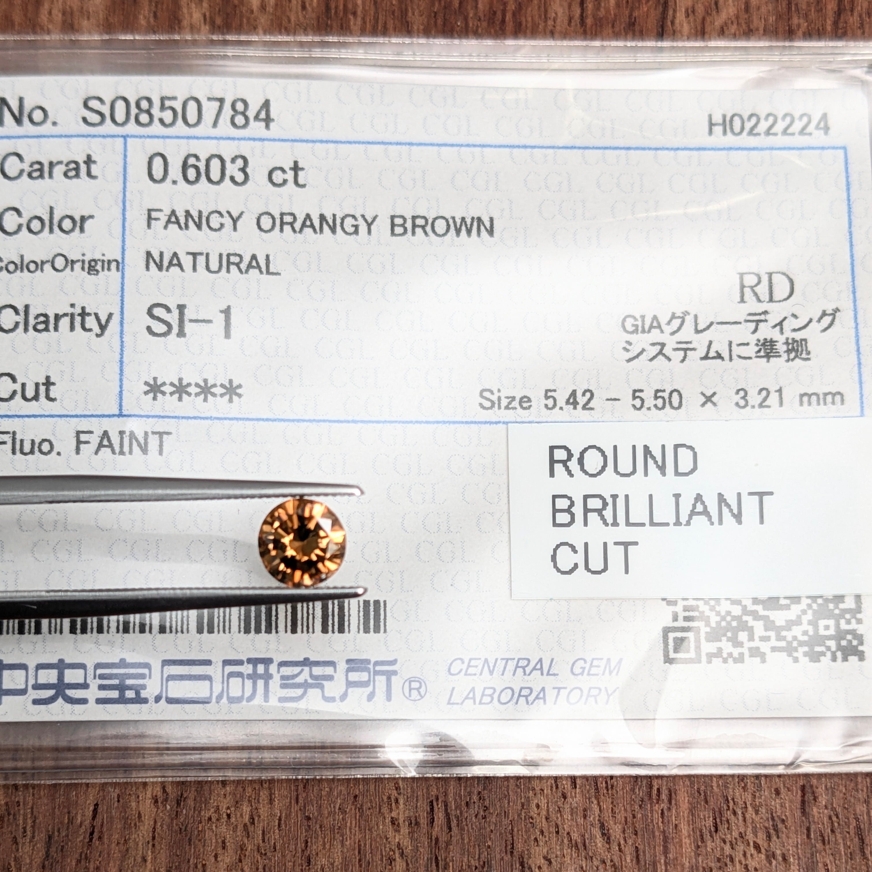 付属品:FANCY ORANGY BROWN SI1 ROUND BRILLIANT CUT 中宝研ソーティング