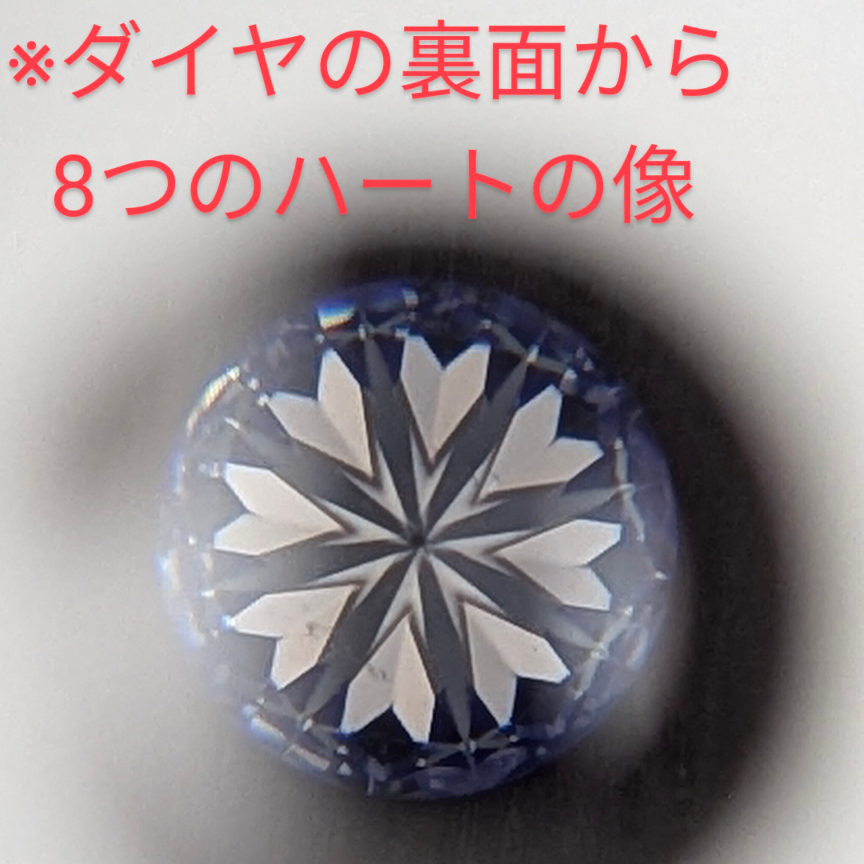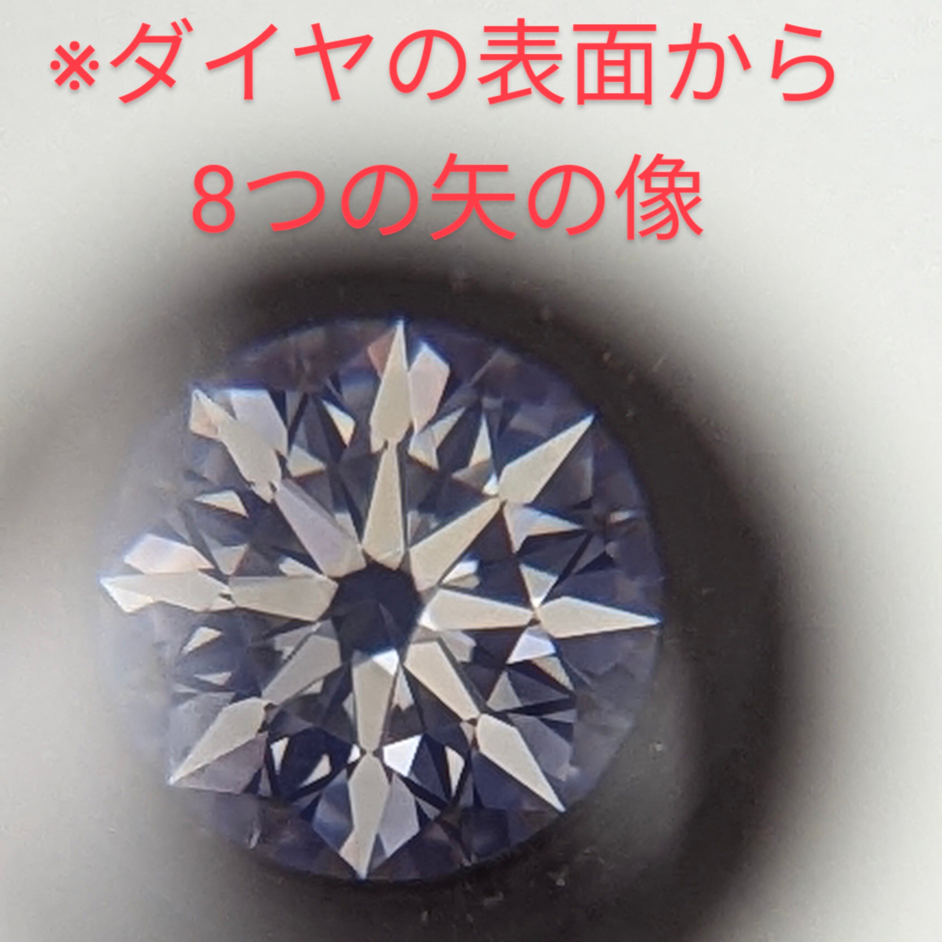 石の裏面から8つのハートの像が、上面からそれを貫く8本の矢が浮かび上がる、カットの中で最上級のラウンドブリリアントカットです。輝きが強く、現時点でのダイヤモンドのカットはこれが一番美しいとされています。