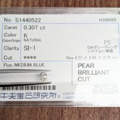 付属品:K SI1 PEAR BRILLIANT CUT 中宝研ソーティング