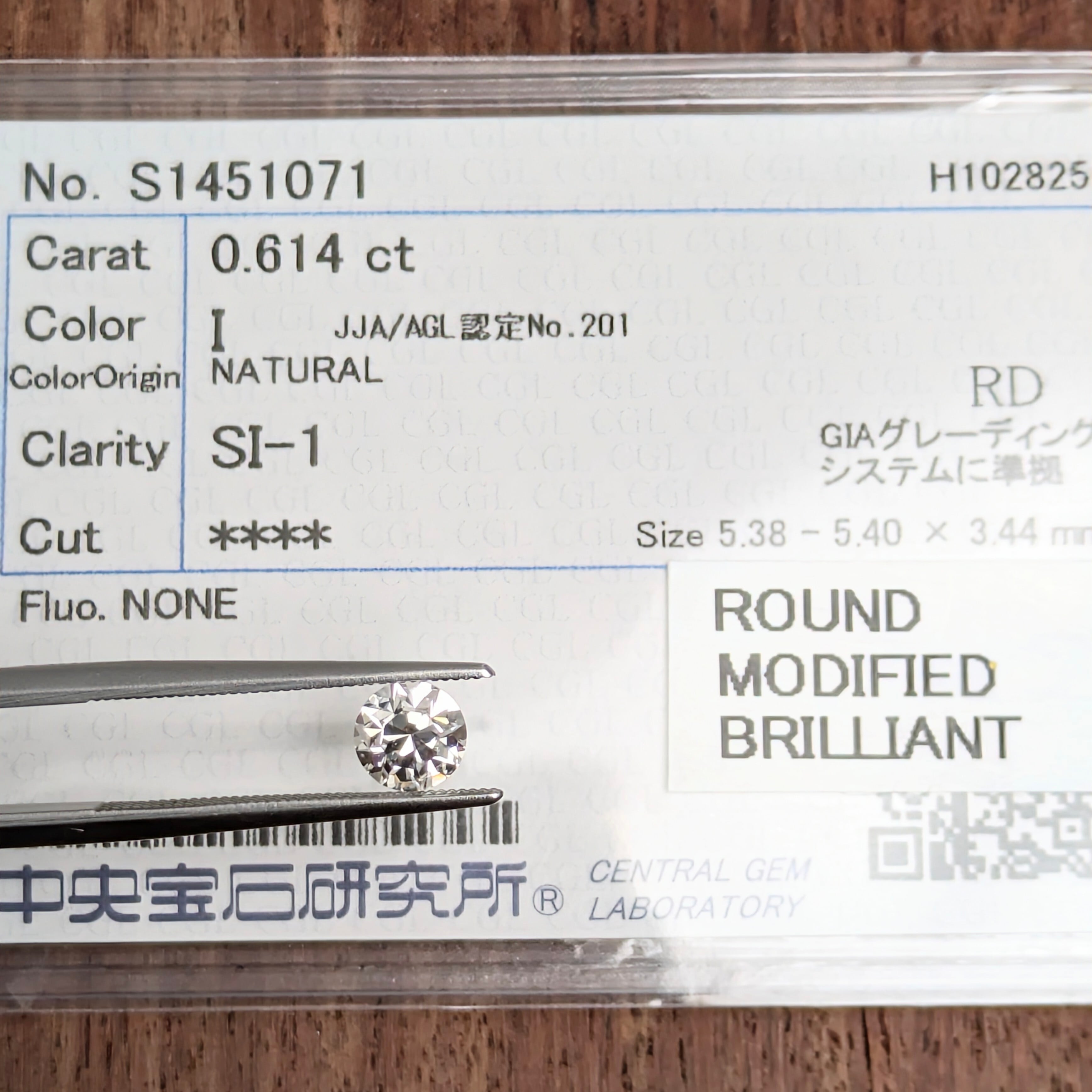 付属品:I SI1 ROUND MODIFIDE BRILLIANT 中宝研ソーティング