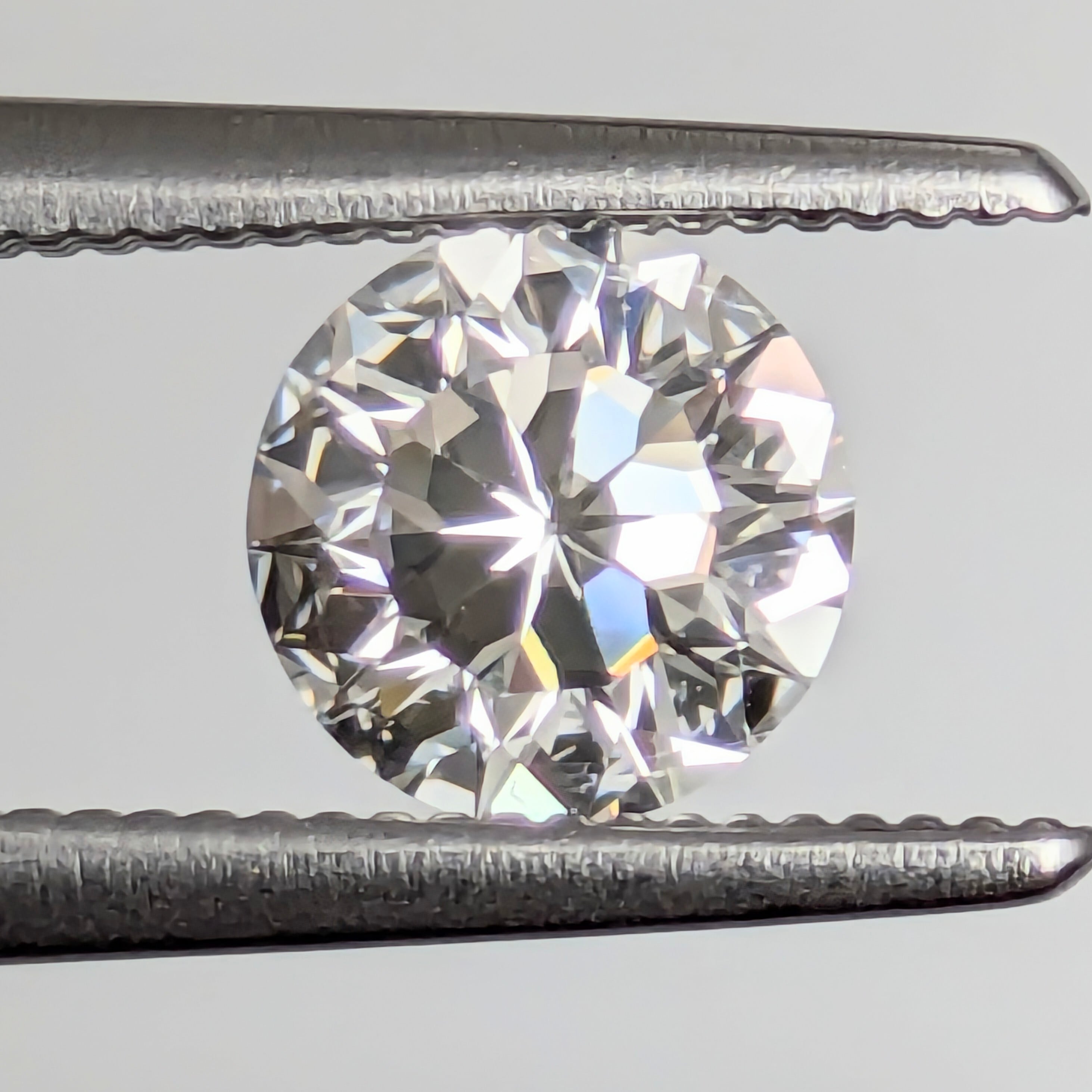 VVS-1という、ハイグレードなクラリティ。それが贅沢にも「ラウンドモディファイドブリリアントカット」という特殊なカットで登場です。肉眼での印象は、七色のファイアと白色の輝きのシンチレーションがとても強いダイヤモンド。その理由は、パビリオン面(裏面)、クラウン側(上面)共にガードルファセット付近のカット面が多く施されていること。ルーペで覗くと、かの有名な皇妃エリザベートの髪飾り「シシィの星」を想起させるカット模様が確認できます。