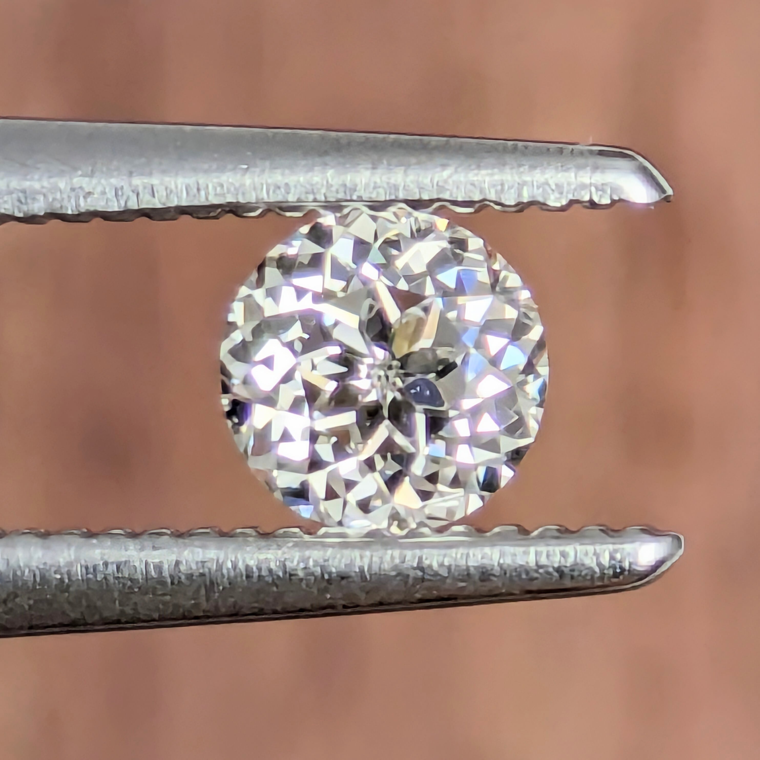 とても細かなシンチレーションが印象的な、輝きの強いダイヤモンド。ルーペで覗くと、テーブルの下には大きく花開いたような8弁のダリアのようなカット面が大きく花弁を開き、その周りをクラウン面とパビリオン面のカット面の絶妙な組み合わせから生み出される繊細で美しい輝きがこれでもかと零れ落ちています。輝きの中に物語を紡ぐダイヤモンド。どこまでも続いているような奥行きのある輝きが印象的な1ピースです。