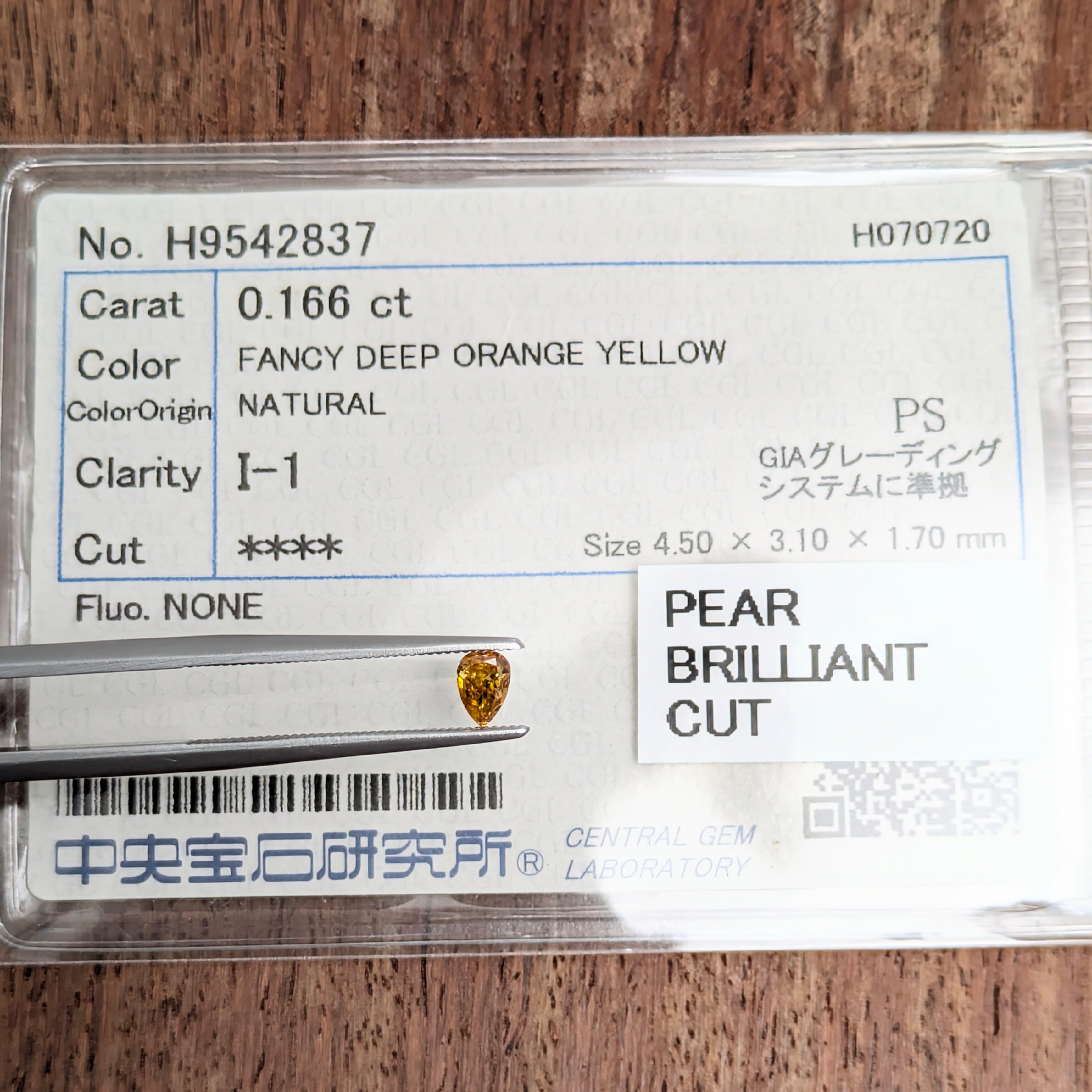 付属品:FANCY DEEP ORANGE YELLOW I1 PEAR BRILLIANT CUT 中宝研ソーティング