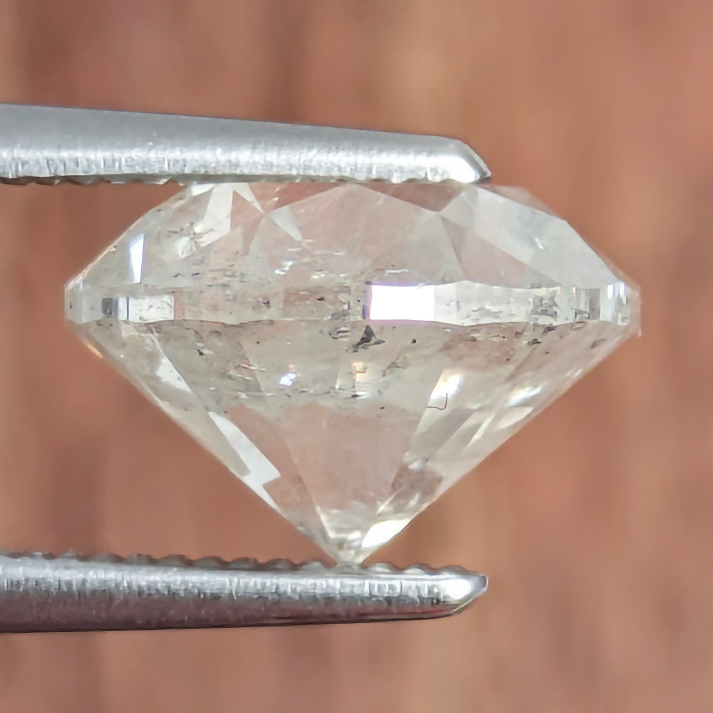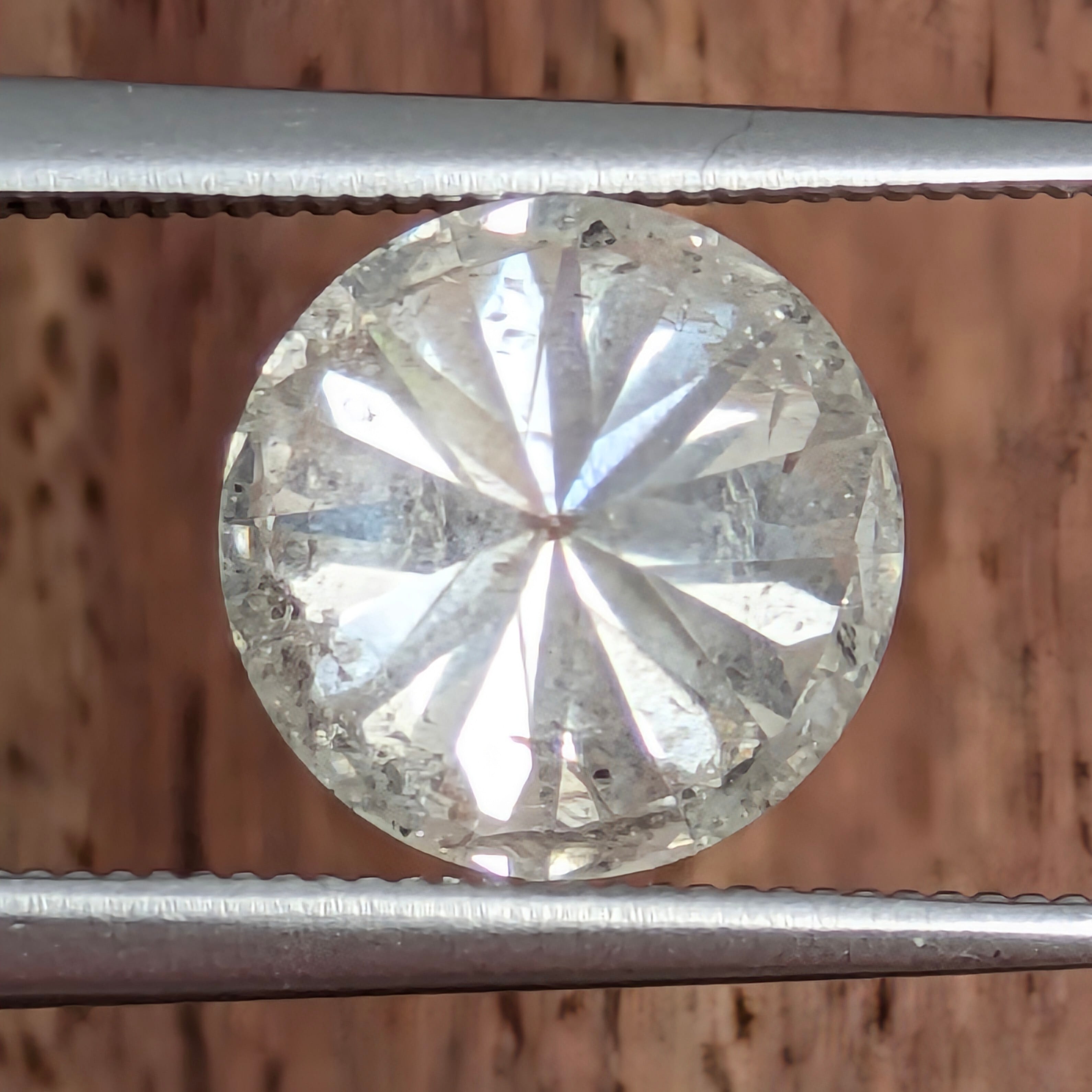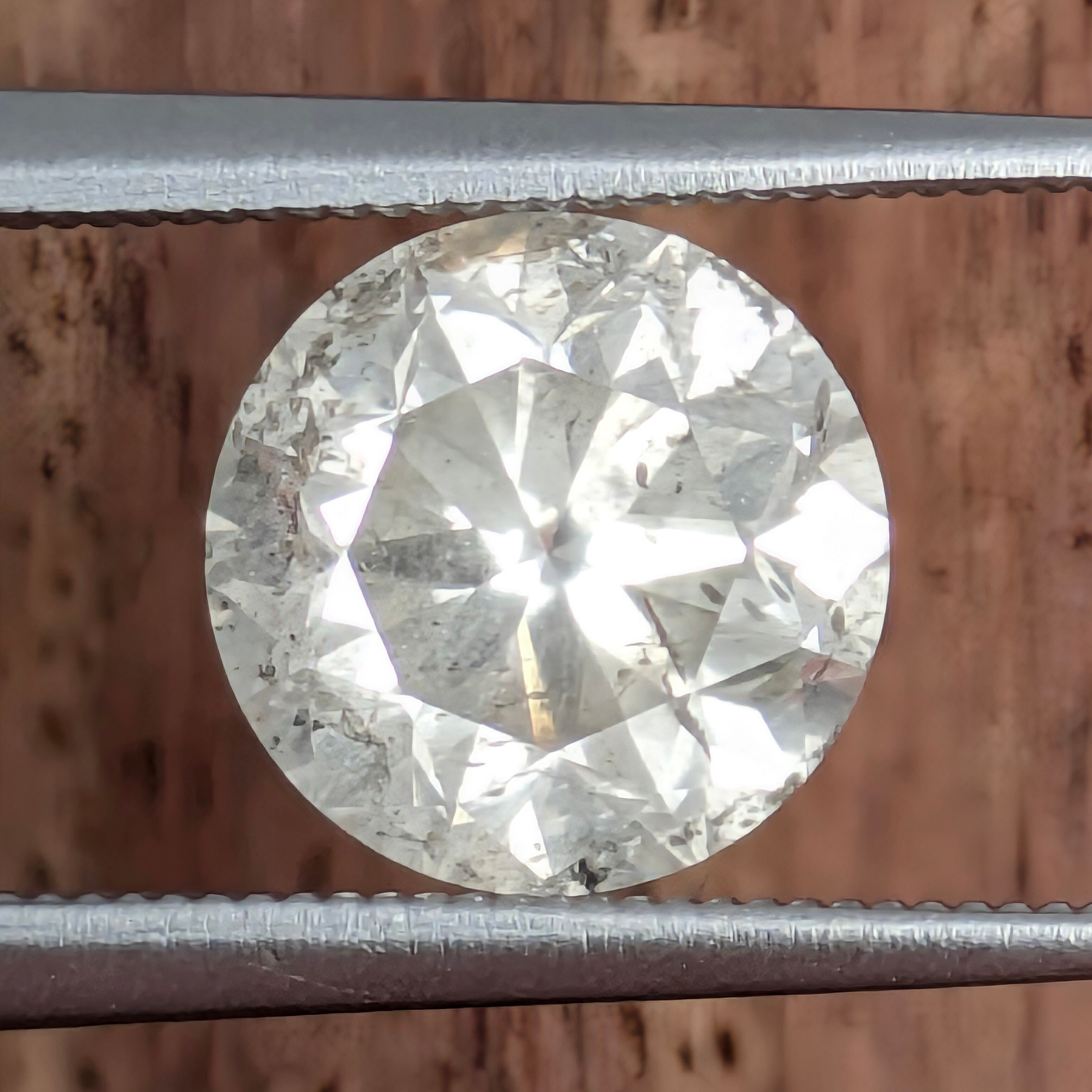 ご覧ください!このサイズ感・・・!2.523ct、I-2のダイヤモンドです。見た目は夢見るように霞がかかったような幻想的な輝き。ソルト&ペッパー系のダイヤモンドがお好きな方にとっては、『ソルト系』になると思います。「濁っているってこと?」と思ったそこの貴方・・・!ダイヤモンドを侮ってはなりません。シルキーな見た目の中に、吹雪の中、遠くから近づいてくる対向車の煌々と輝くヘッドライトのような、内側から滲み出る煌めきはやはりダイヤモンドならではの美しさです。