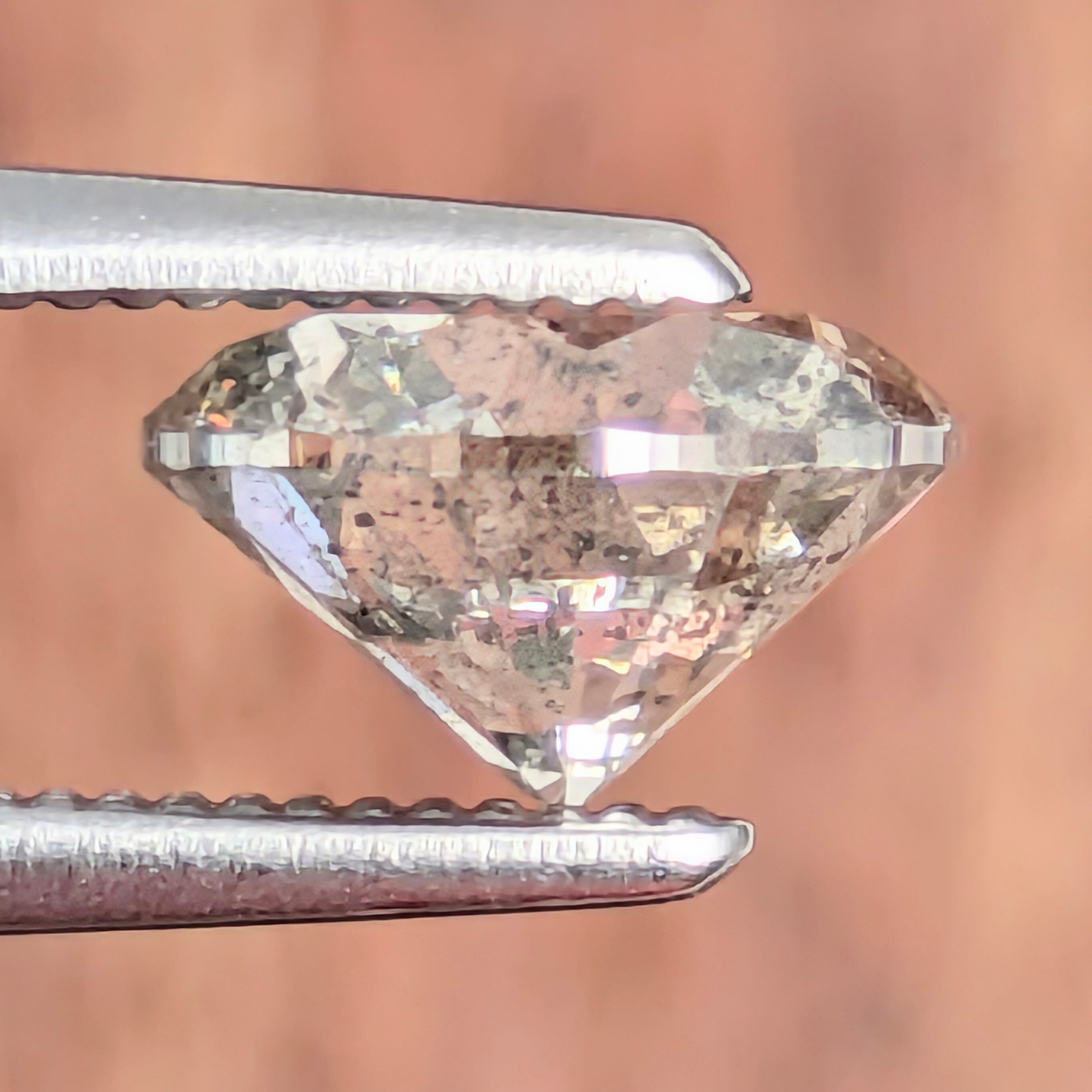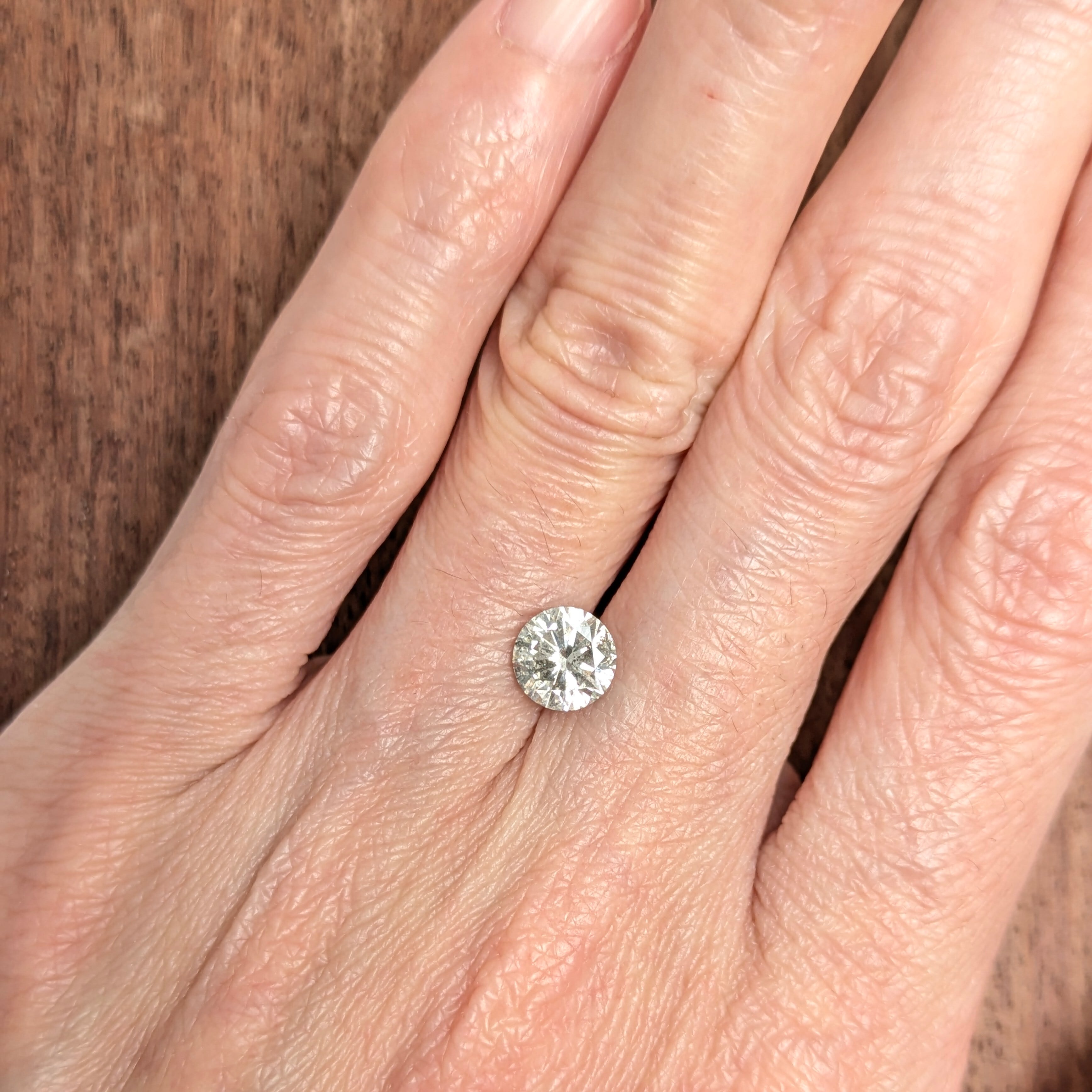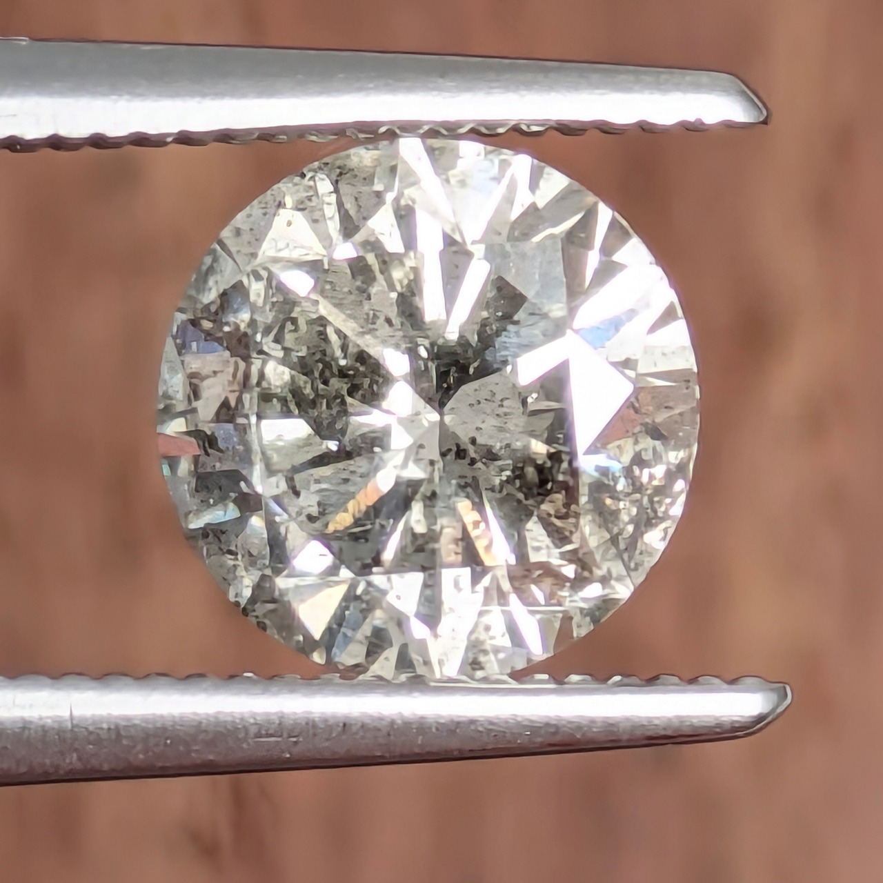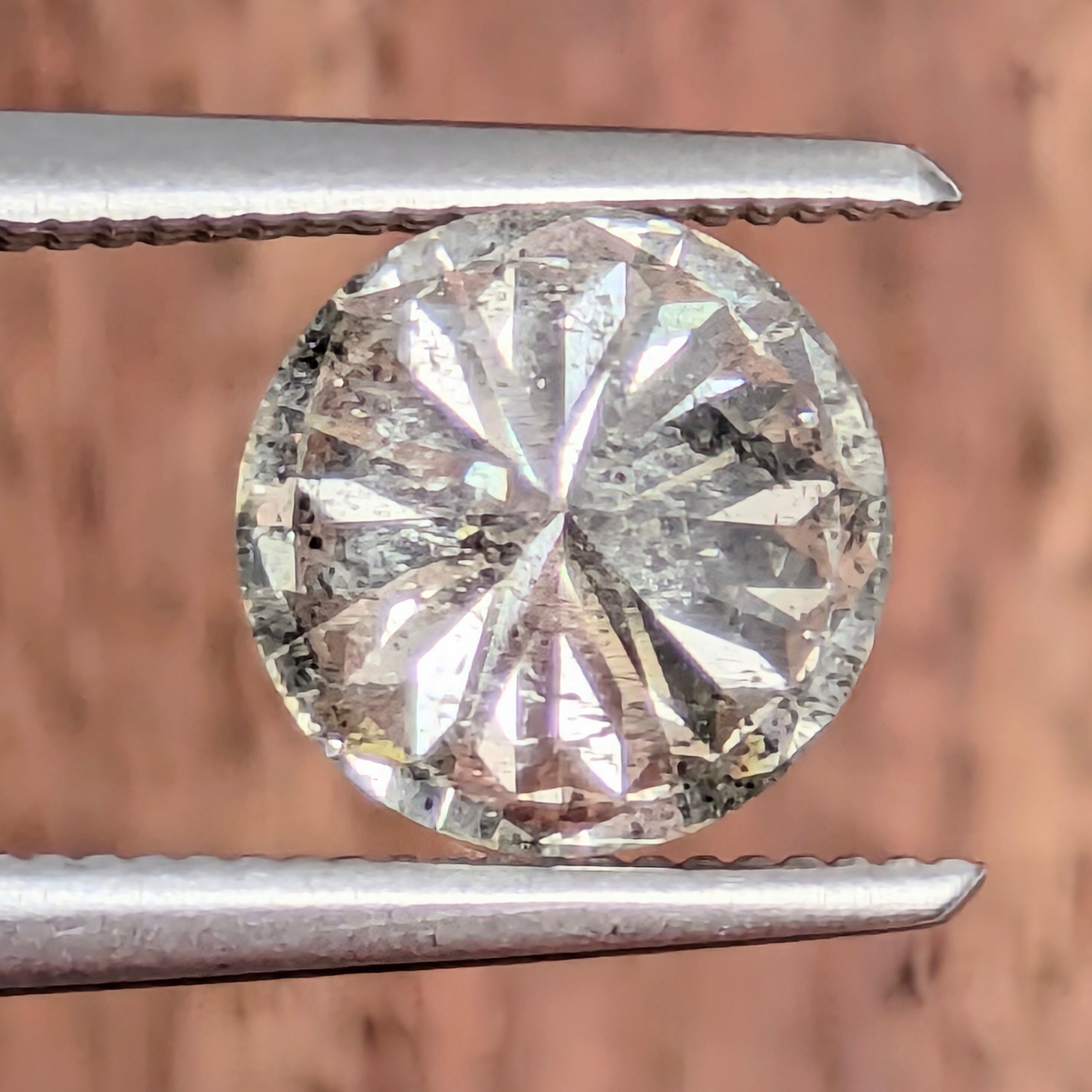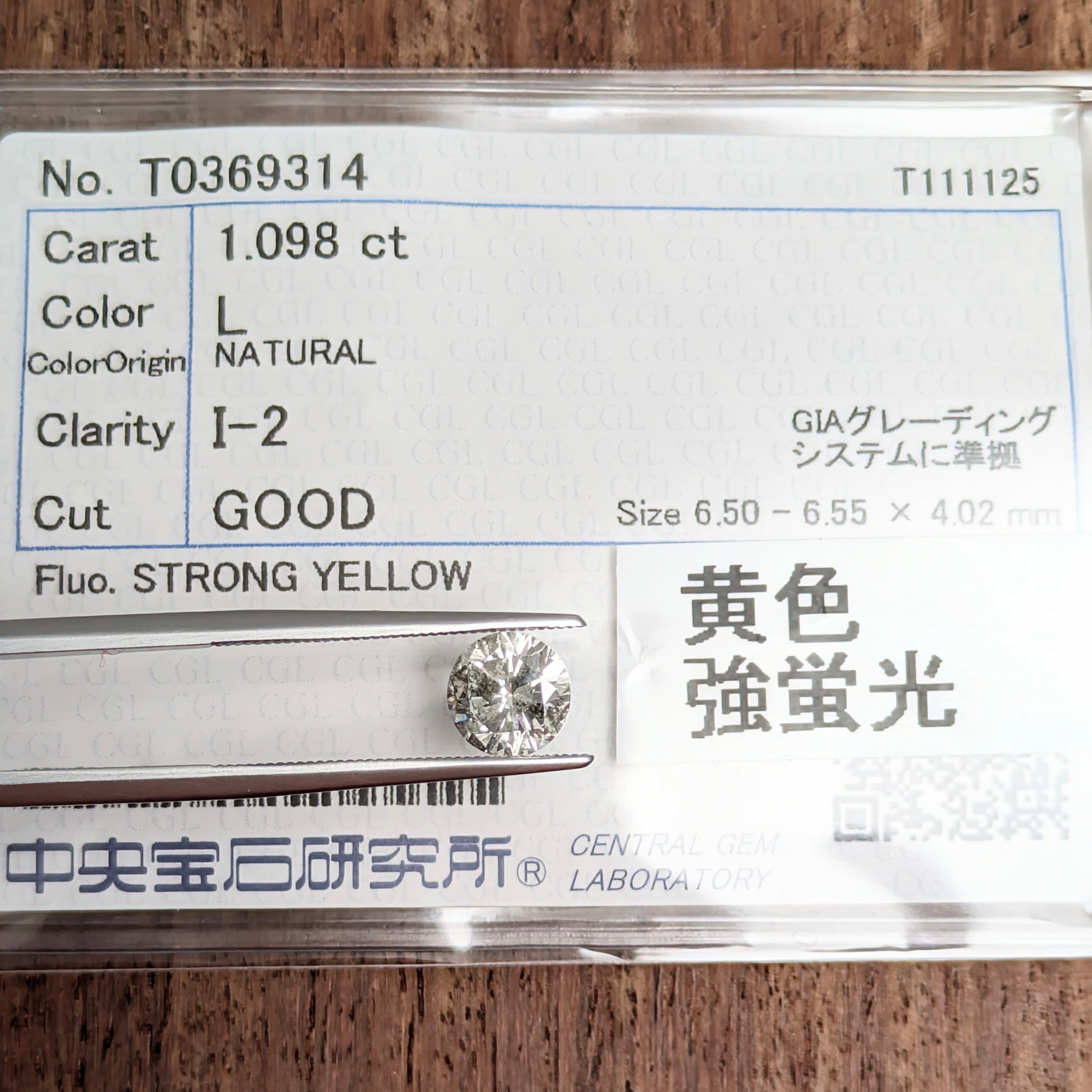 鮮やかな「レモンイエロー」に蛍光を発するダイヤモンド。通常時は1.098ctの「I-2」という渋い石ですが、この紫外線蛍光の美しさは一見に値します。そして通常時も「I-2」とはいえ、テリも輝きもなかなかに美しい1ピース。視認性の低いカーボン(黒色インクルージョン)が多めということもあり、恐らく想像以上に肉眼だと綺麗な印象です。ソルト&ペッパー系のダイヤモンドでいうと、「ペッパー系」。クールさとホットさを併せ持った1ピースです。