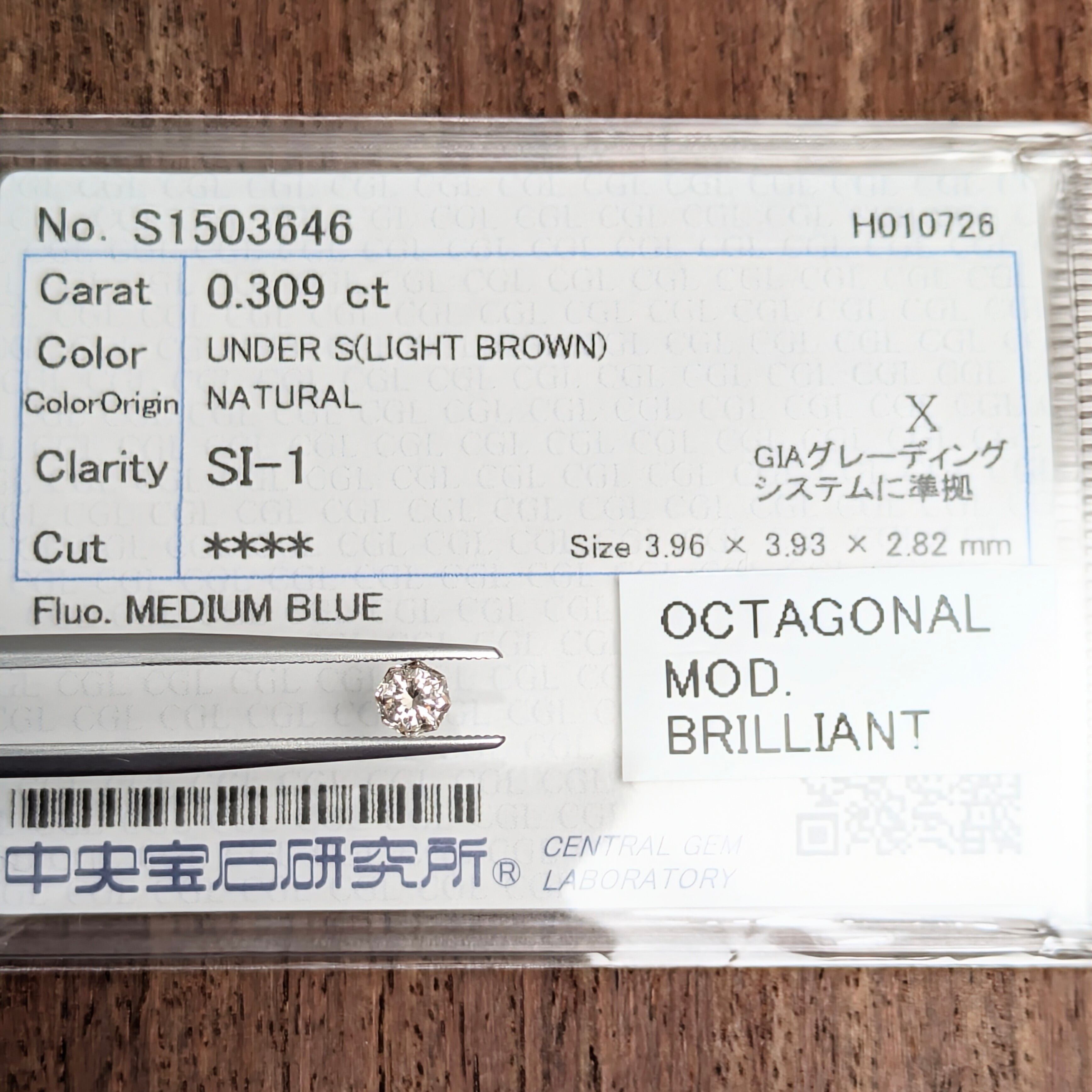 付属品:UNDER S(LIGHT BROWN) SI1 OCTAGONAL MOD. BRILLIANT 中宝研ソーティング