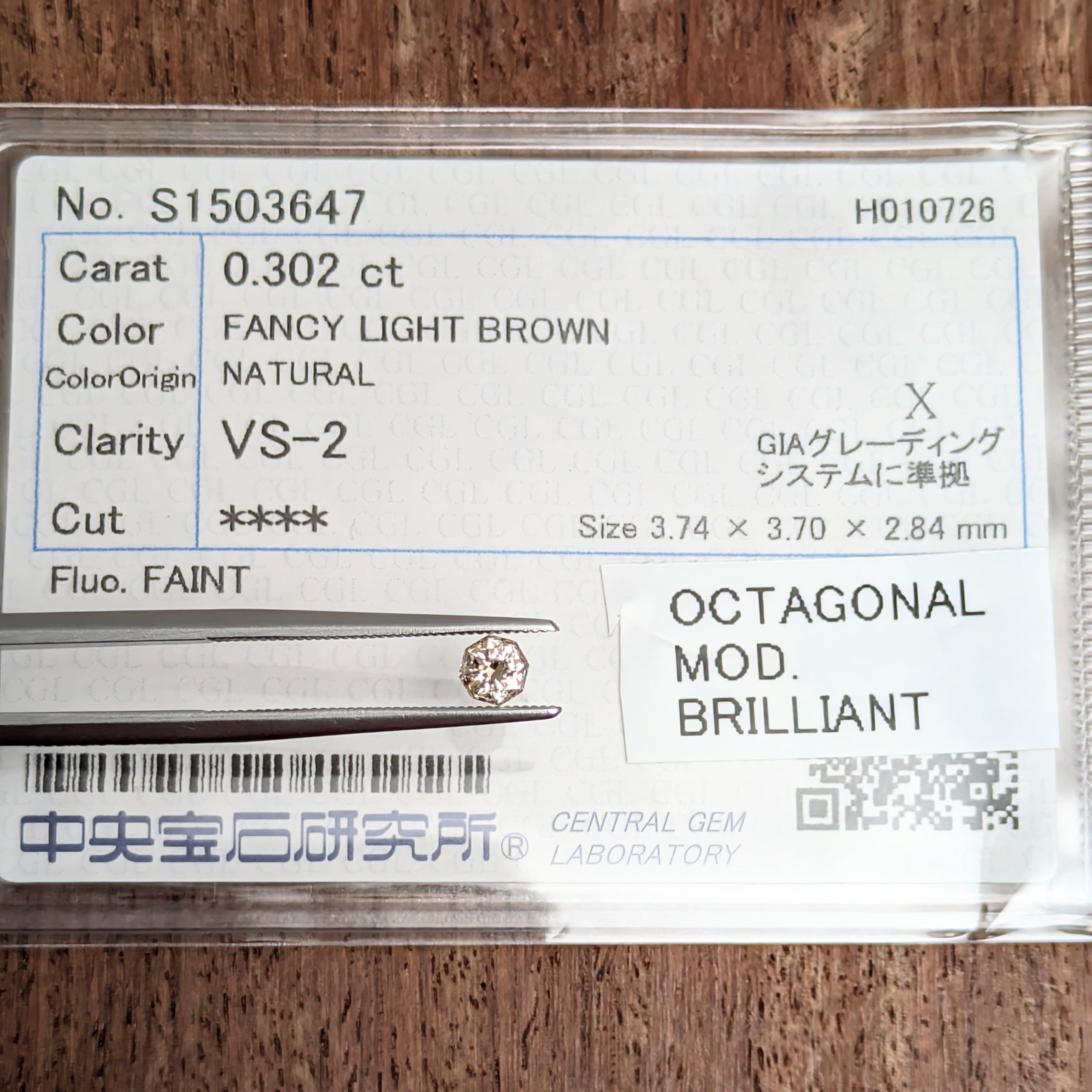付属品:FANCY LIGHT BROWN VS2 OCTAGONAL MOD. BRILLIANT 中宝研ソーティング