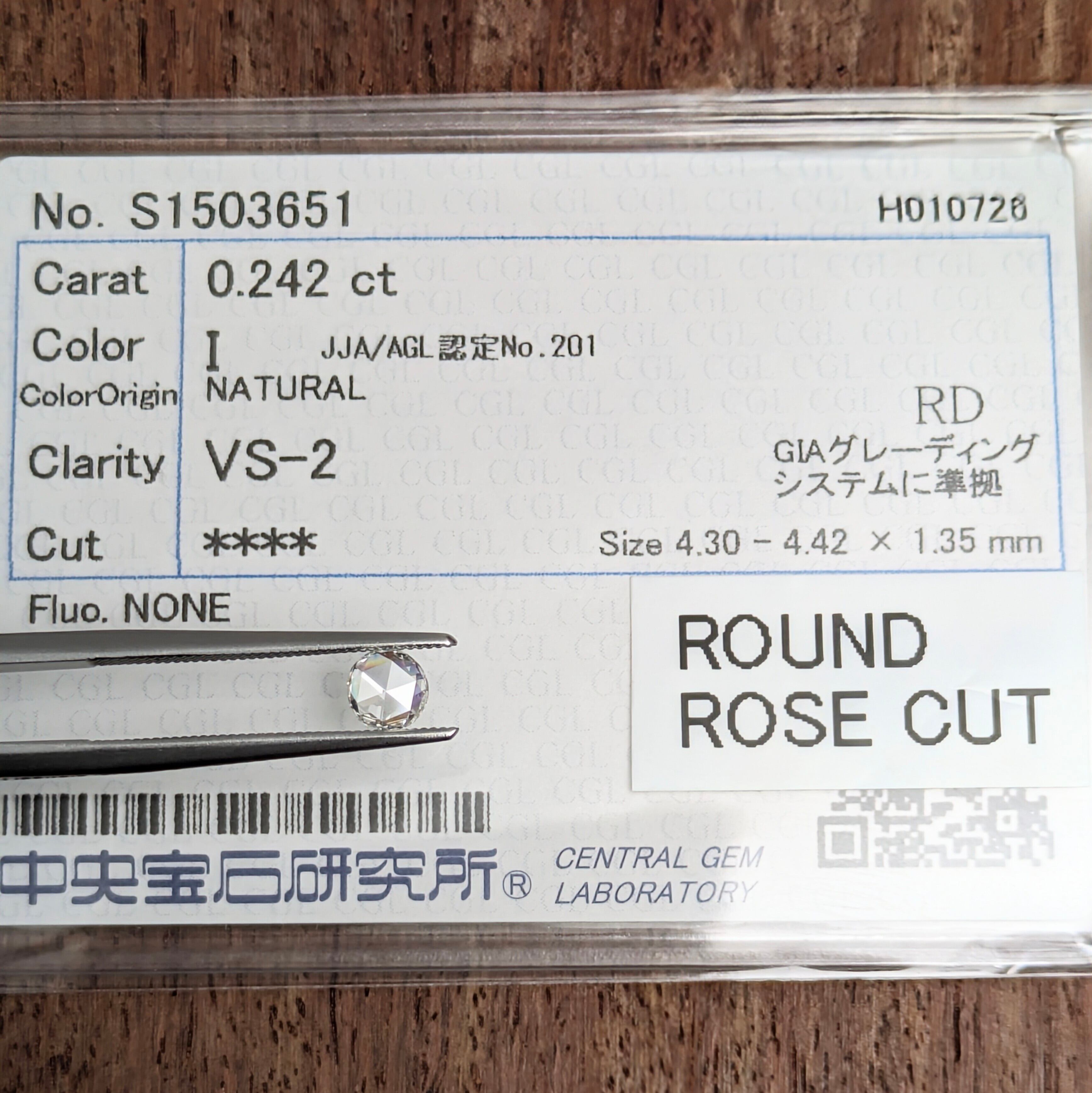 付属品:I VS2 ROUND ROSE CUT 中宝研ソーティング