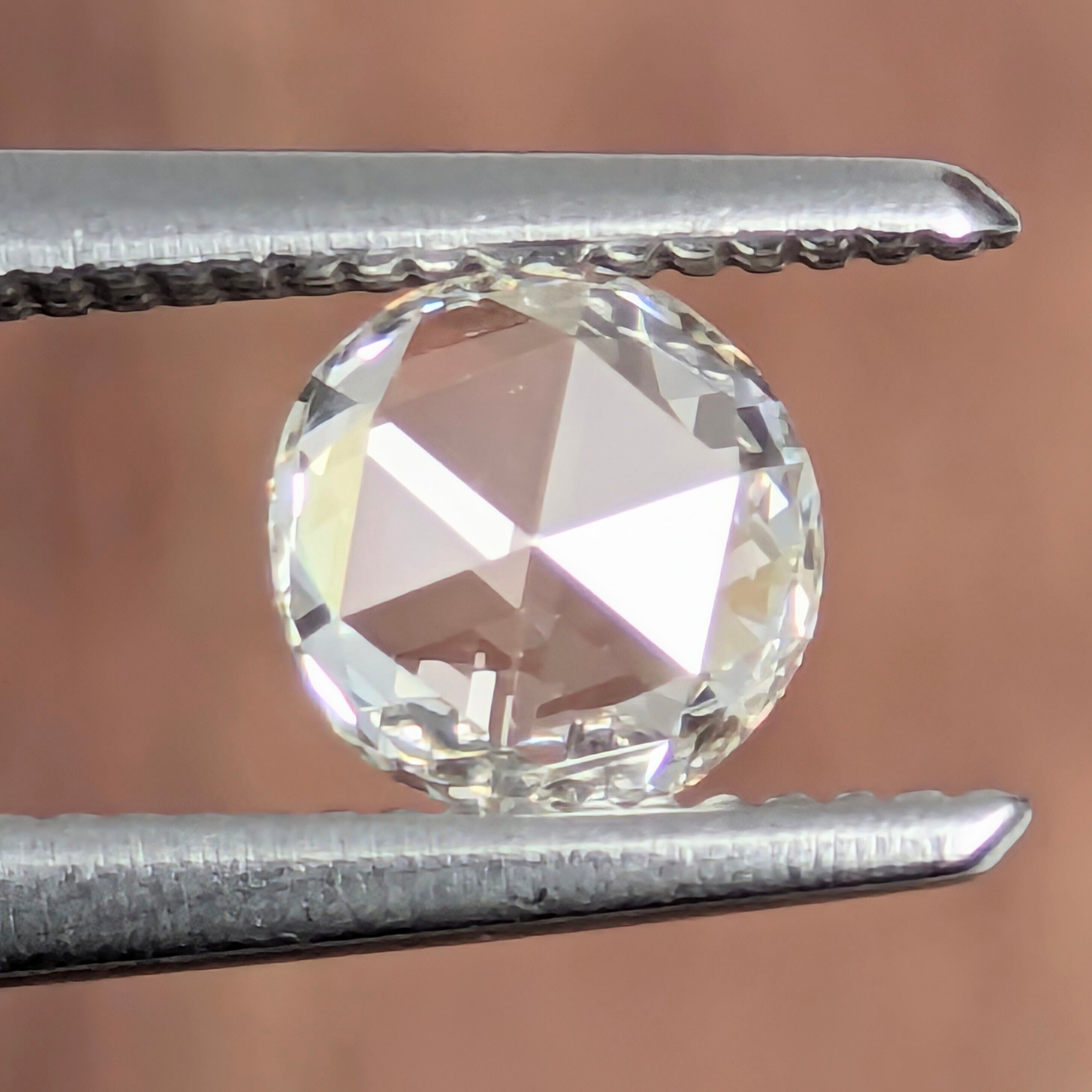 「ローズカット」という、なんともロマンチックな名前が付けられたカット。その由来は、ドーム状に規則正しく並んだ三角形のファセット面の連なりが、薔薇のつぼみの幾重にも折り重なったその花びらを想起させることからだそうです。現代のように高い技術で高度で緻密なカット面を付けた輝きの強いものとは違い、素材そのものの透明感と色、そしてダイヤモンドの「硬度を感じる強いシンチレーション」という、美しさを誤魔化さない歴史ある煌めきを見せてくれます。