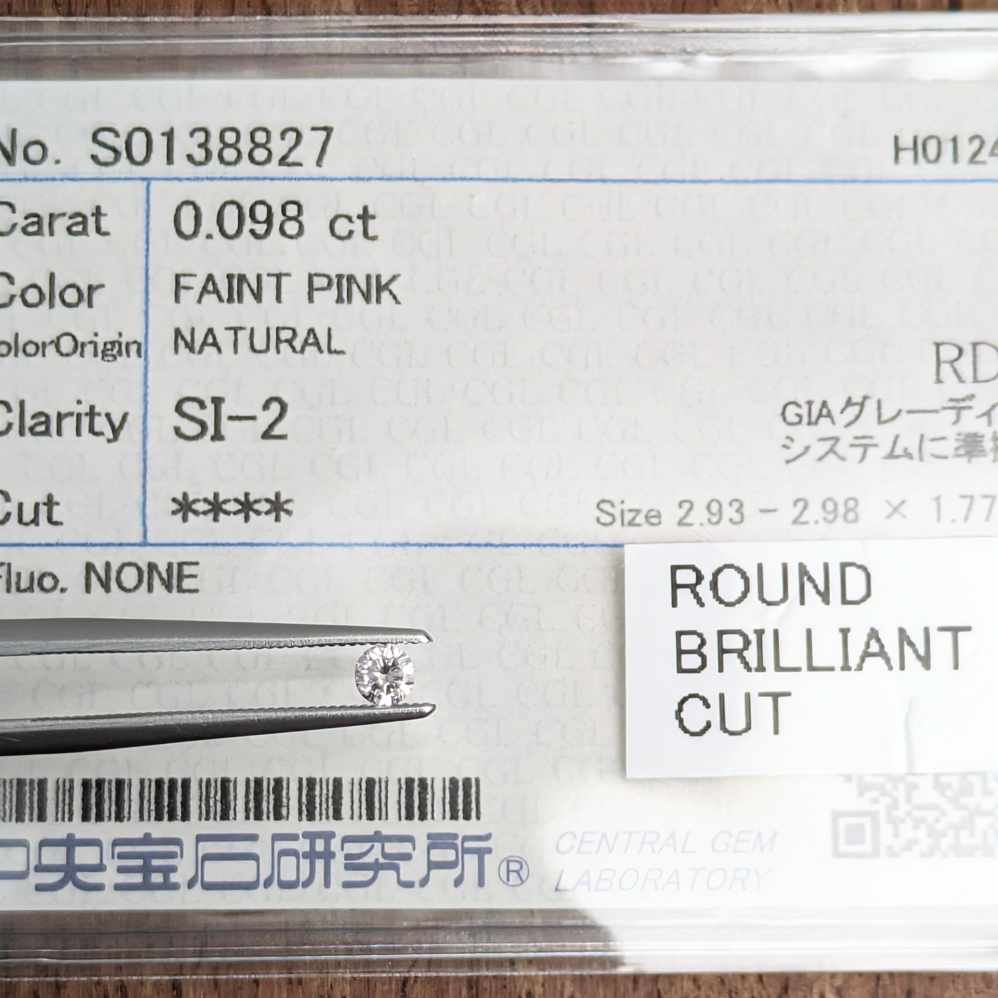 付属品:FAINT PINK SI2 ROUND BRILLIANT CUT 中宝研ソーティング