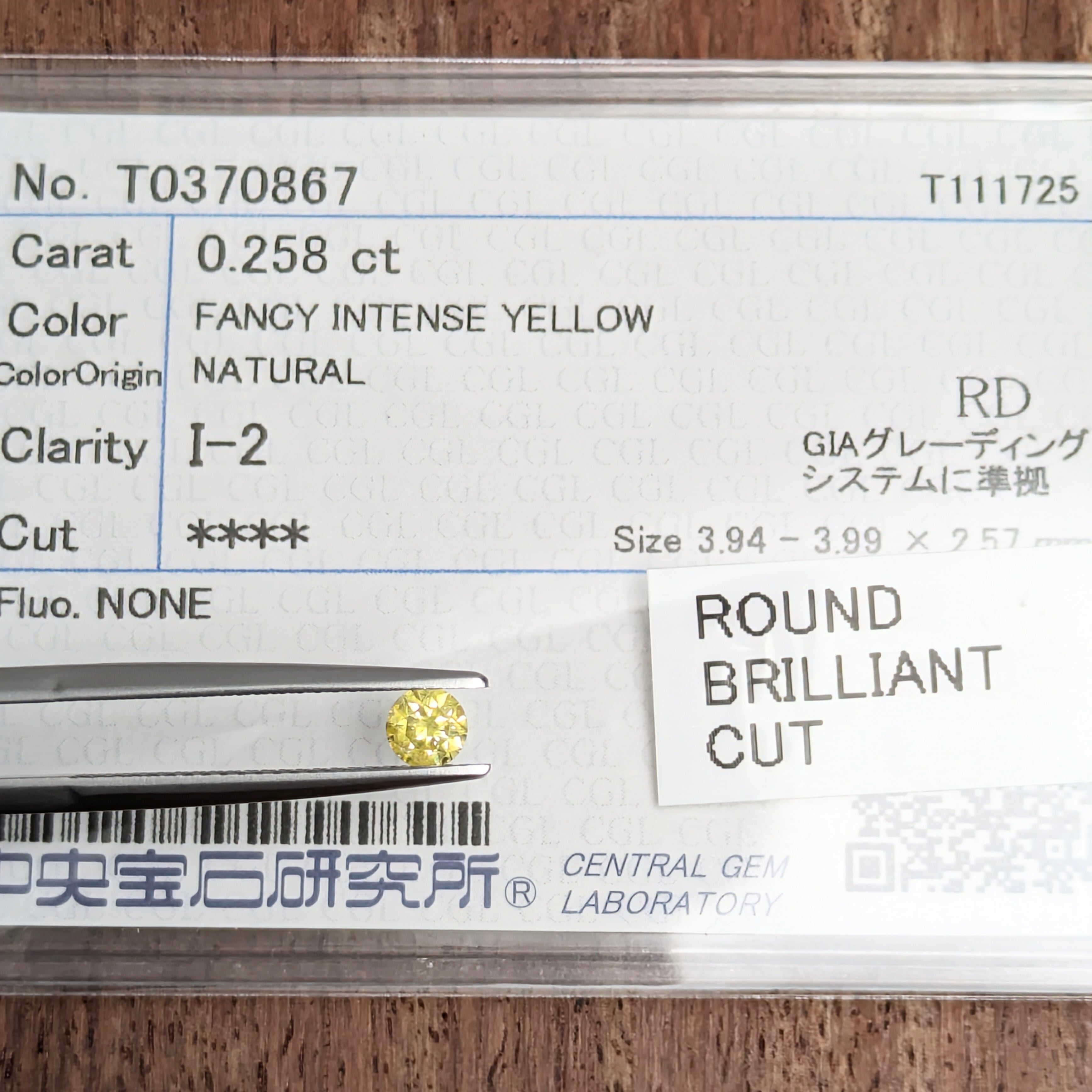 付属品:FANCY INTENSE YELLOW I2 ROUND BRILLIANT CUT 中宝研ソーティング