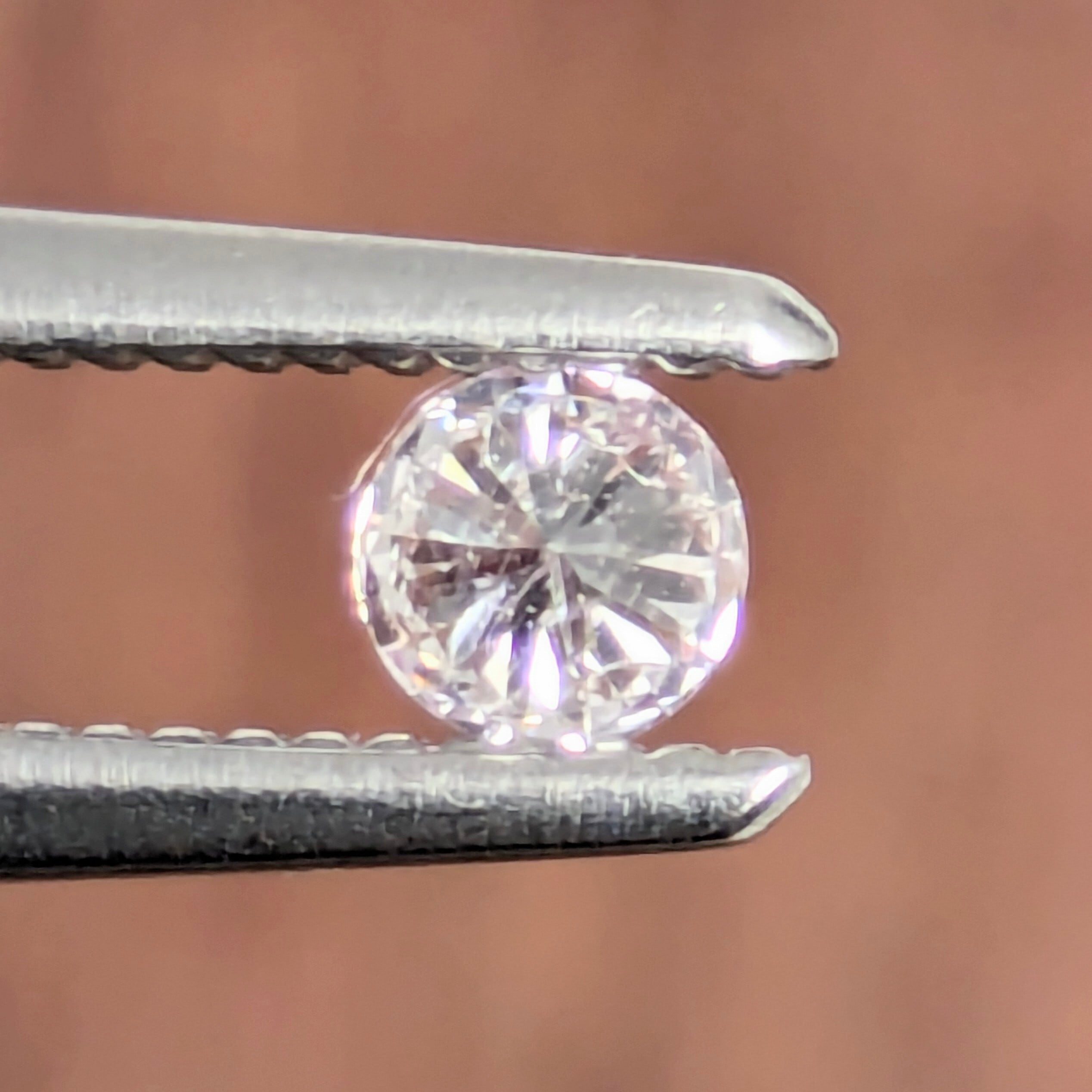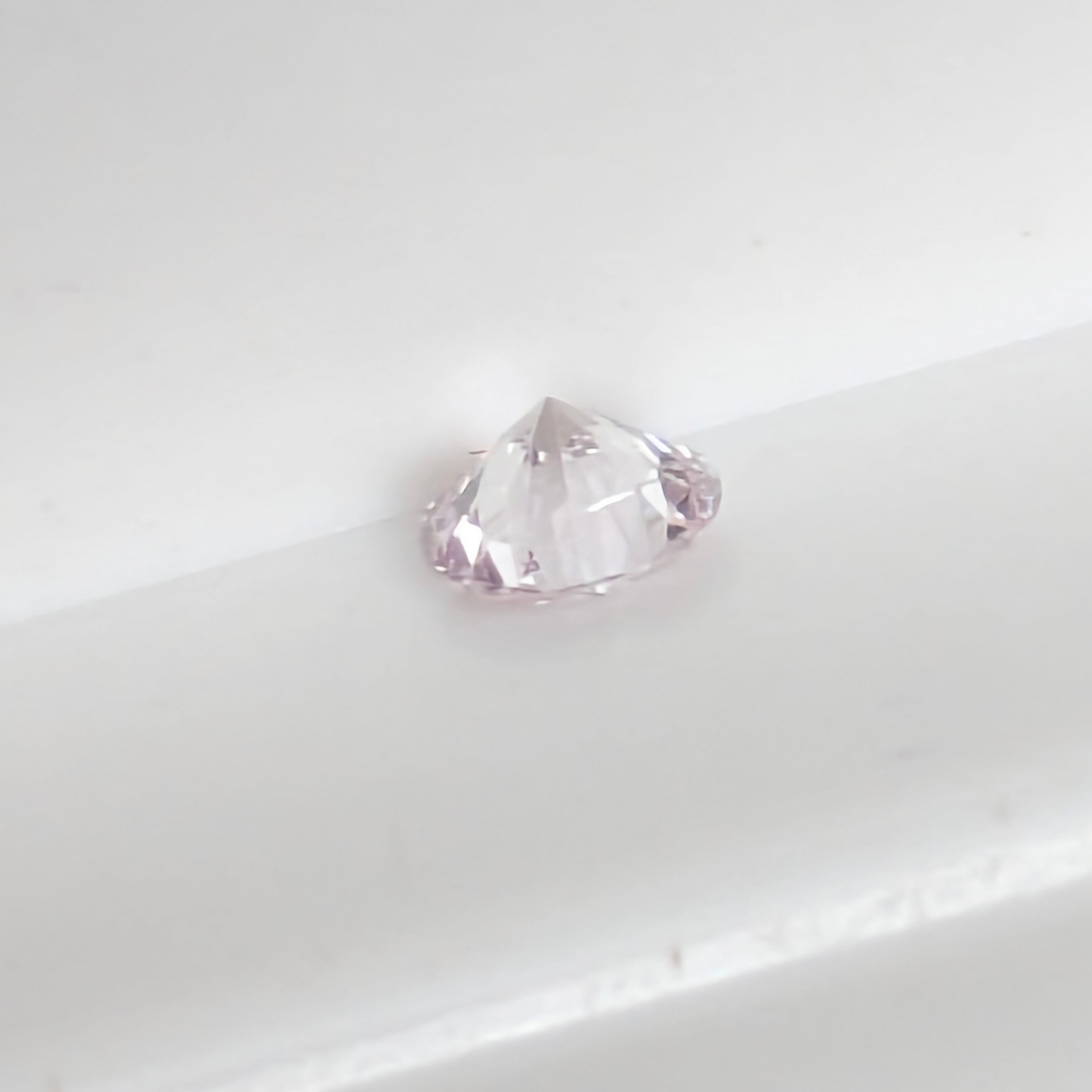 小粒ですが、フェイスアップでもきちんとピンク色味を感じられる1ピース。「FAINT PINK」のグレード通り、微かで可憐なピンク色が可愛らしいダイヤモンドです。それは春の幸せ溢れた大気が、そのまま宝石になったようなハッピーな輝き。クラリティは「SI-2」ですが、ちょっと長めのフェザーが入っているのみで肉眼では全く見えなく、輝きを妨げるようなものでもありません。小粒であればあるほど、ダイヤモンドの本領が発揮される気がします。