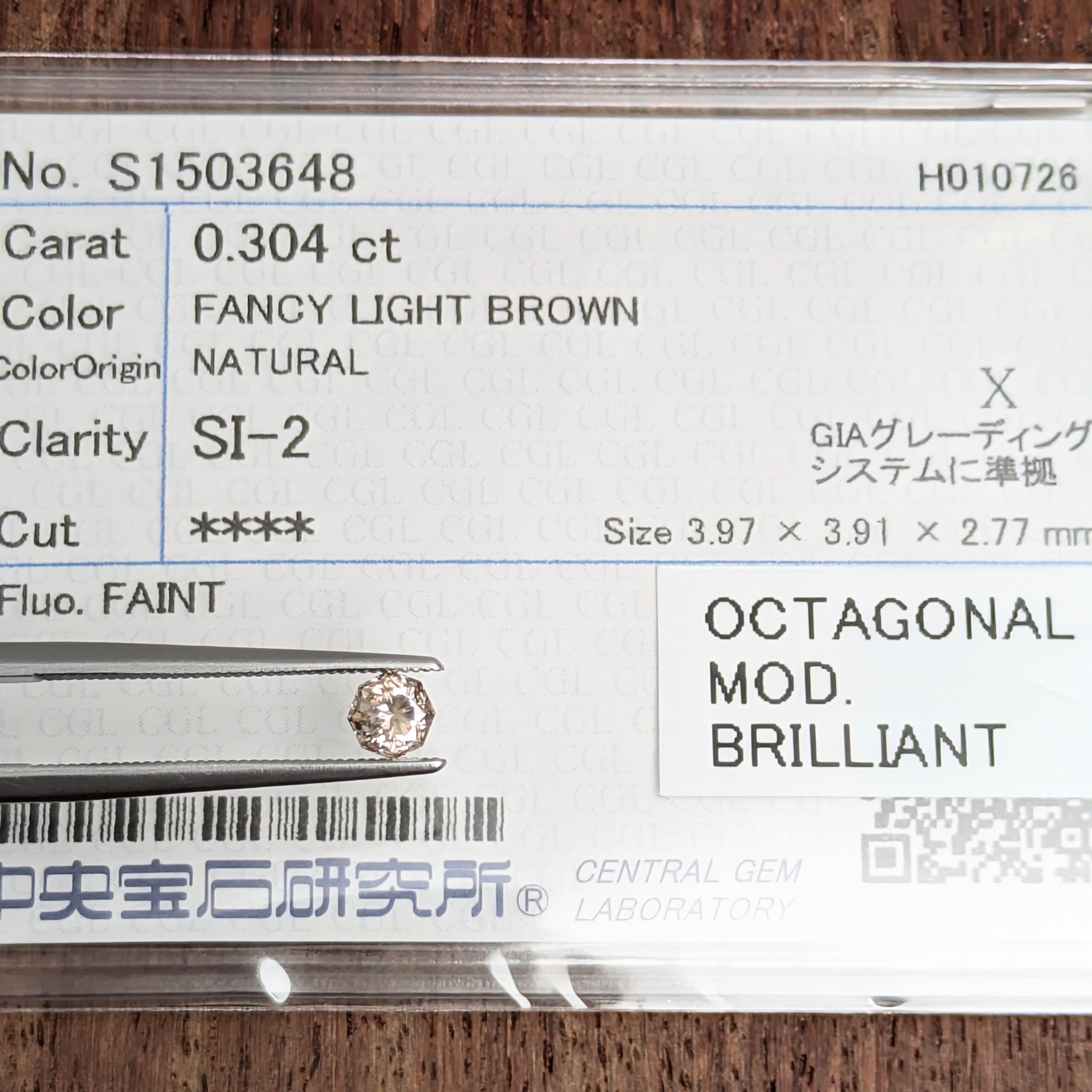 付属品:FANCY LIGHT BROWN SI2 OCTAGONAL MOD. BRILLIANT 中宝研ソーティング