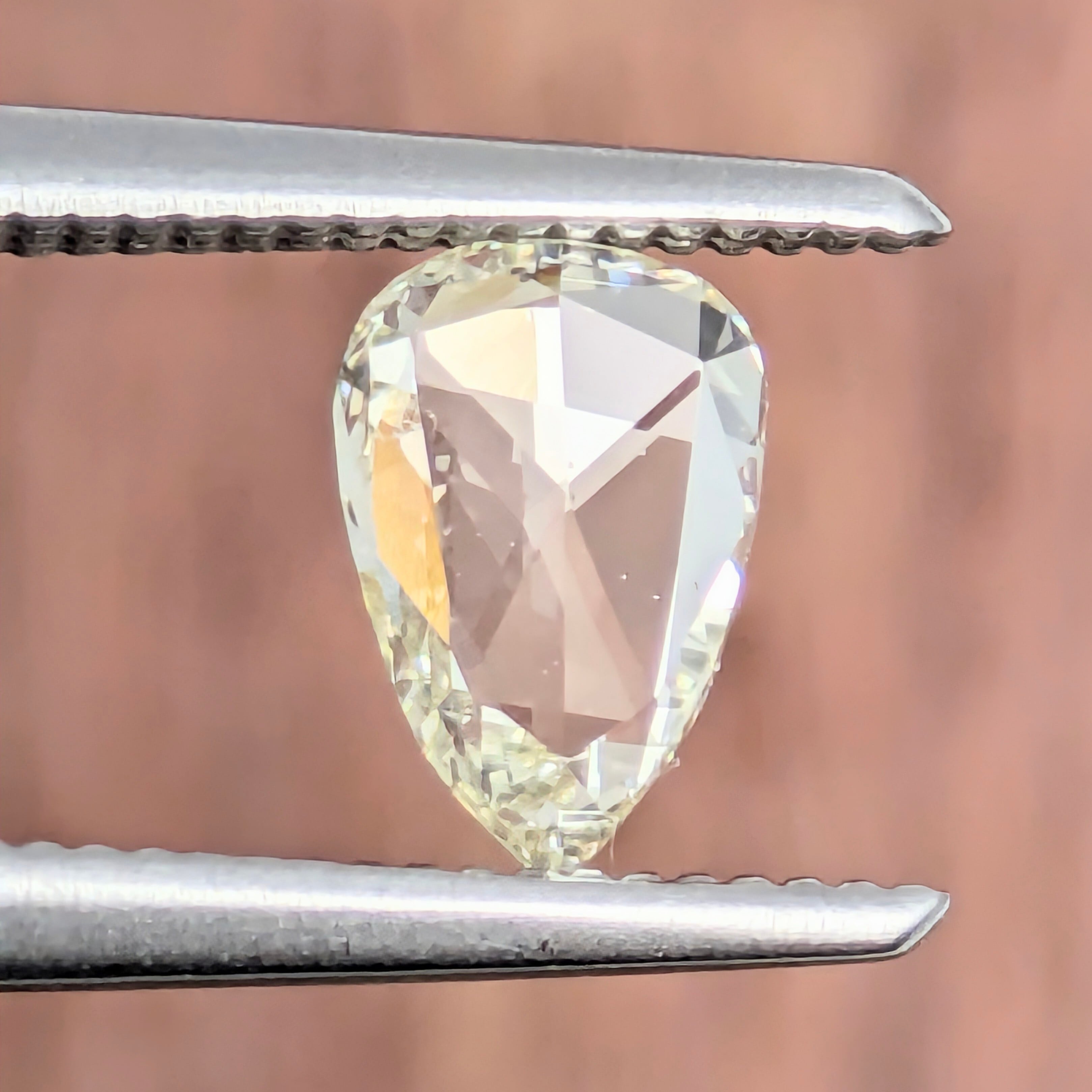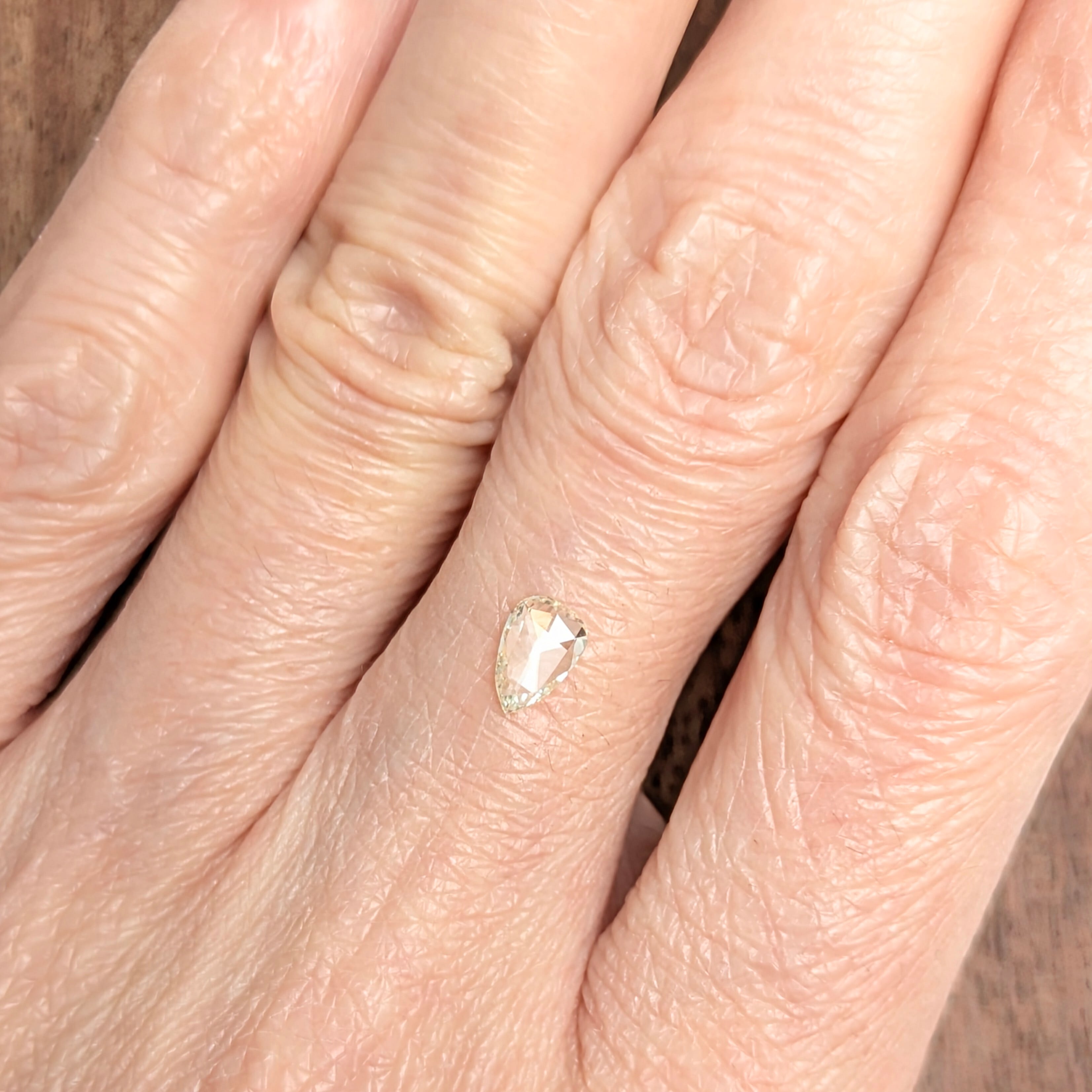 0.284ctとはいえ、侮るなかれ!パビリオン面の膨らみが無い分、全面に『顔』にボリュームが期待できる1ピース。VS-1の透明度と、ローズカットの良好なカット面からの強い煌めきで、カラット数以上の満足感がある1ピース。肌に載せてみるとほんのわずかにイエロー味を感じる色相で、全体的な輝きと合わせてまるで「晴れの日の空気」を宝石に結晶させたような1ピース。心がワクワクと踊り出す美しさを感じるダイヤモンドです。