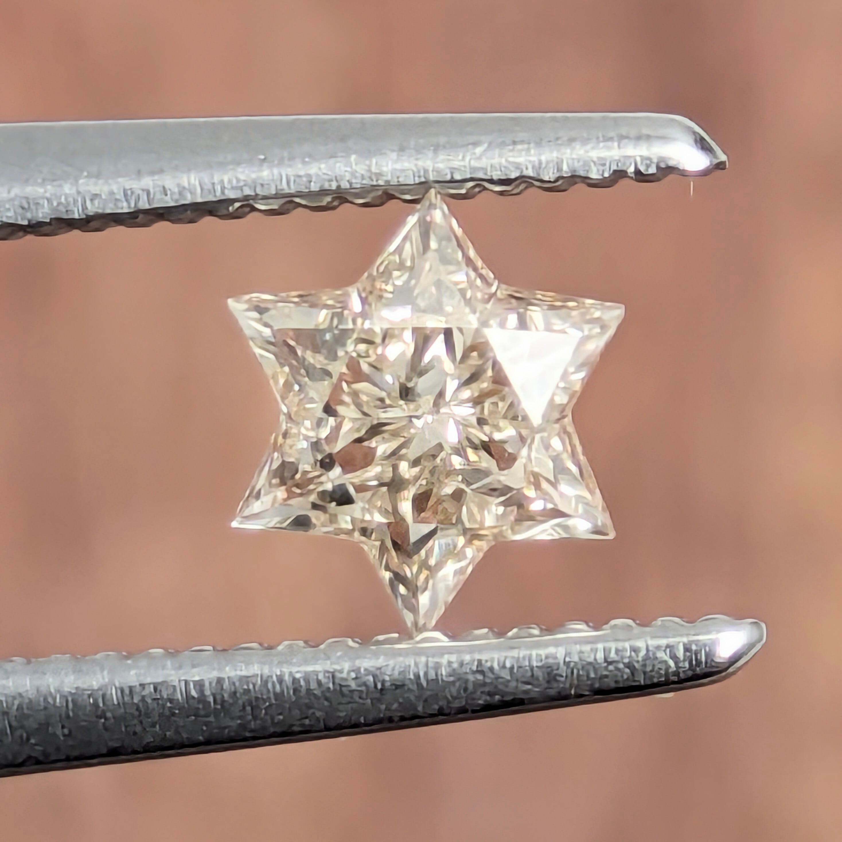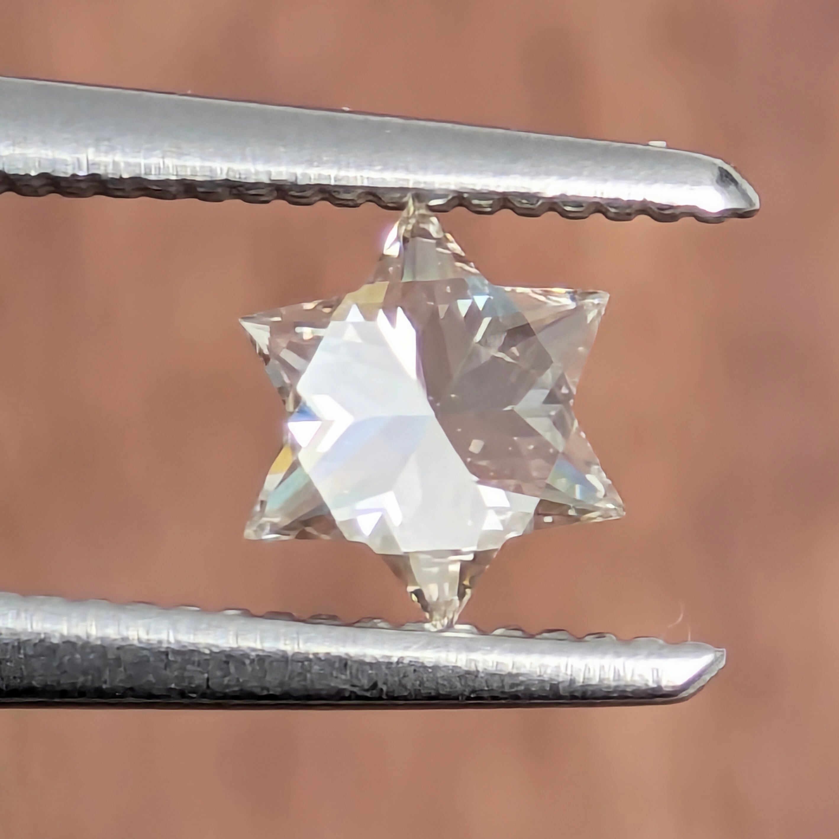 この形と輝きを目にした時に、一番に頭に浮かんだのは『シシィの星』。そう、かの壮絶な美貌を誇ったオーストリア皇妃エリザベートの神を美しく飾ったあの髪飾りです。ほんのり色づいたベリー・ライト・ブラウンの色相であることで、輝きに負けない6条の星のフォルムの美しさも楽しめる1ピースです。ジュエリーに加工するにはかなりデザインに悩みそうですが、もうこれは、ルースケースに入れてずっと愛でていたい見事な美しさです。