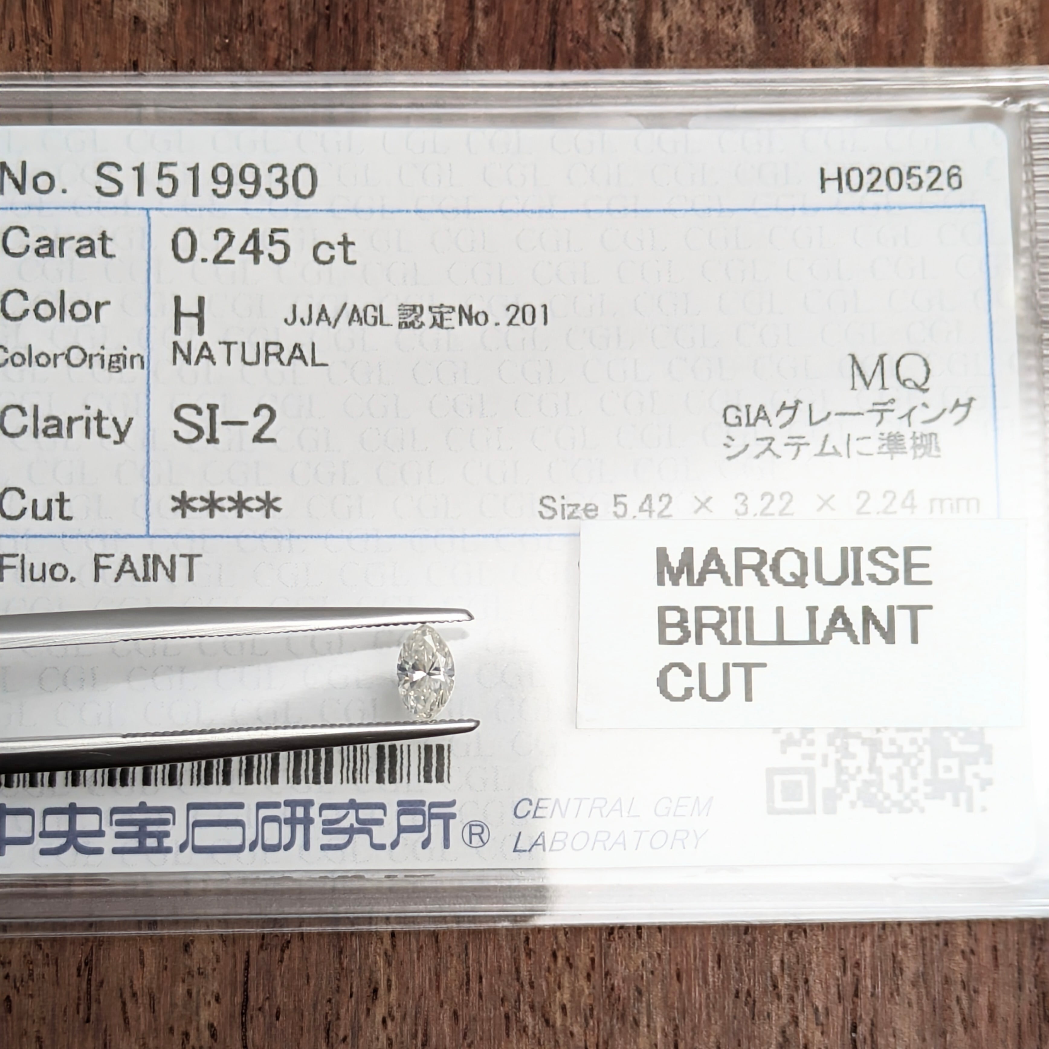 付属品:H SI2 MARQUISE BRILLIANT CUT 中宝研ソーティング