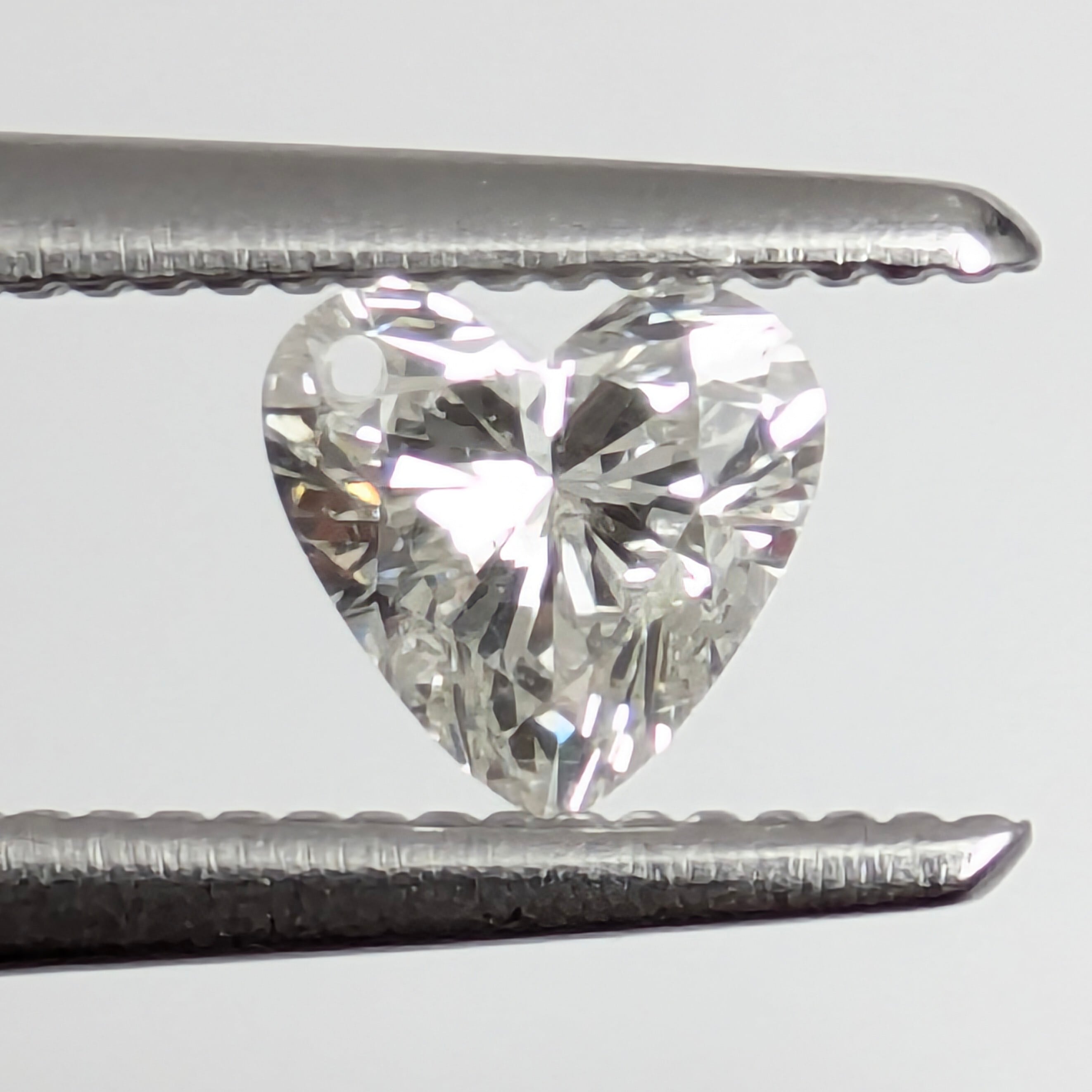 実はこちらは、PRO208346のダイヤモンドとペアを組める1粒。PRO208346は右の膨らみ部分に穴が開いていますが、こちらは左側の膨らみの部分に穴が開いています。小さな丸環を直接通して、ピアスのチャームにしたり、ブレスレットやネックレスのワンポイントに煌めかせたり、その用途は様々!SI-2ですが、多くはこのセッティングホールに由来し、美しさを損なうような目立つインクルージョンはありません。1ピースででも、ペアでも、かなりフレキシブルに活躍してくれそうなダイヤモンドです。