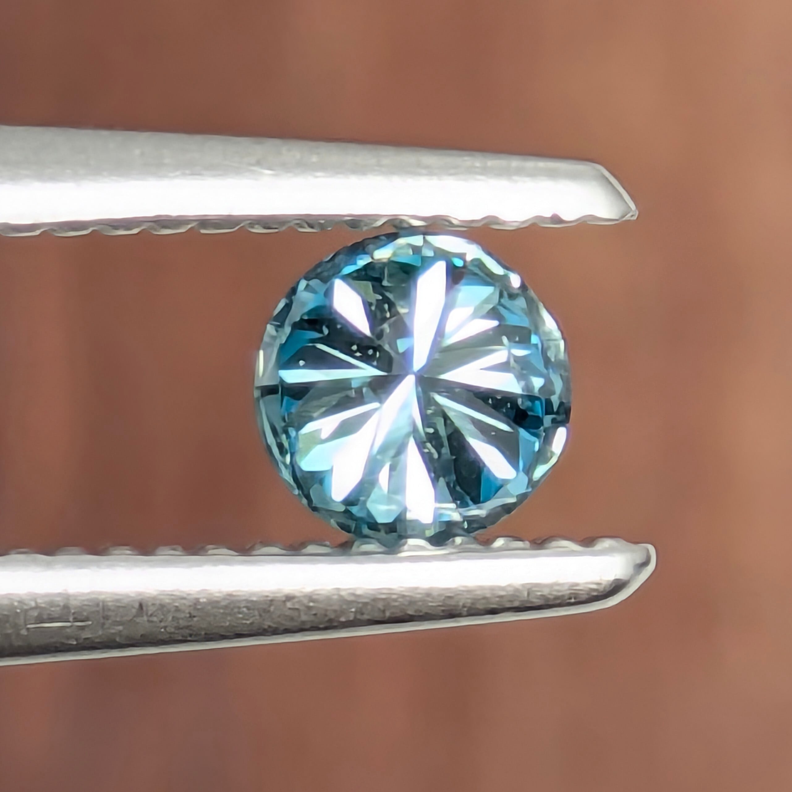 トリートカラーのダイヤモンドの良いところは、やはりそのカラーバリエーションの豊富さ。トリートブルーの色合い一つをとっても、氷のように透き通ったアイス・ブルーのものから、今回のように深海から生まれ出た深遠を纏ったような深いブルーまで、お好みのままです!これだけの濃い色合いでも隠し切れない輝きと虹色のブリリアンスは、さすがダイヤモンド。トリートカラーのダイヤモンドはそれと割り切って、デザインで遊んでみるのも一興です。