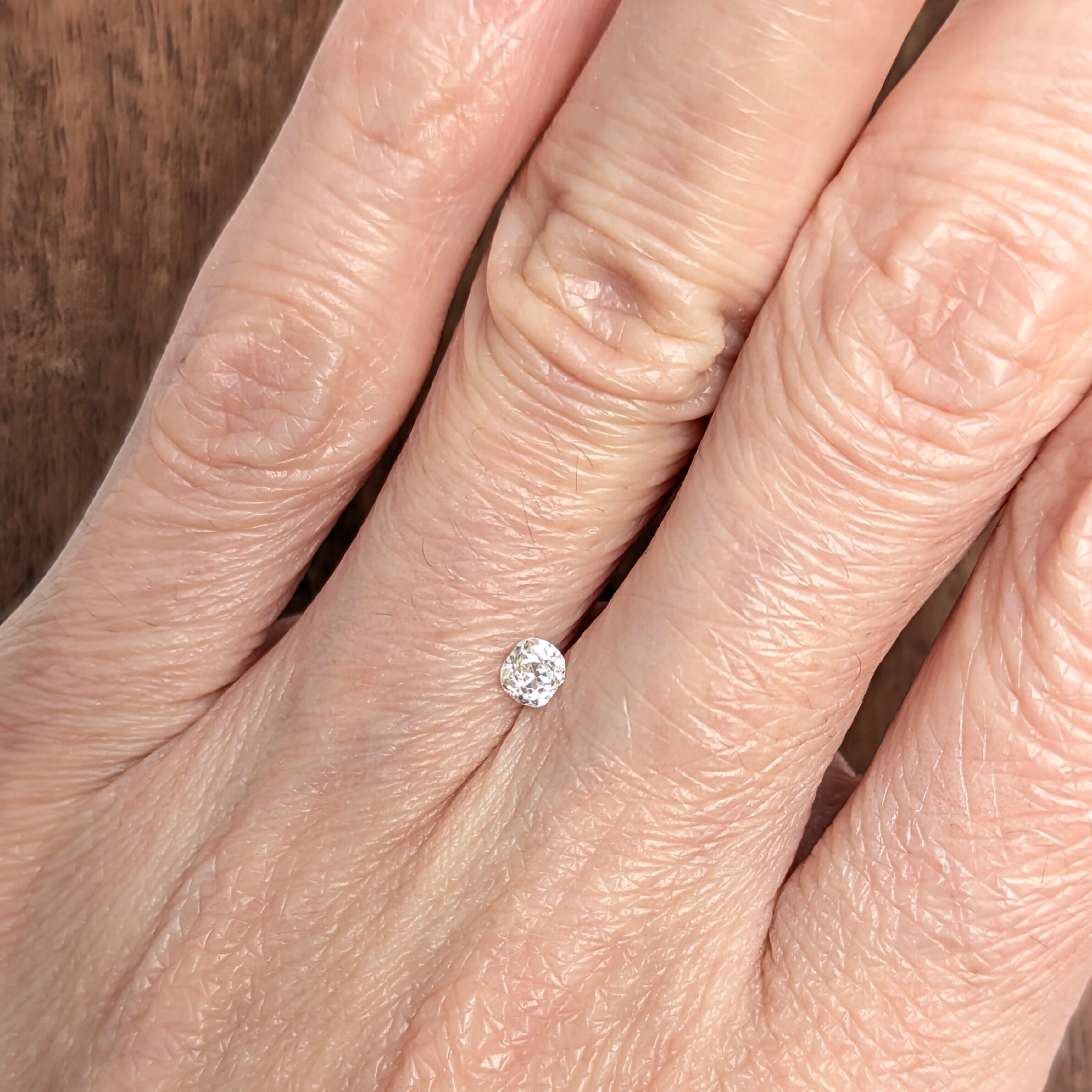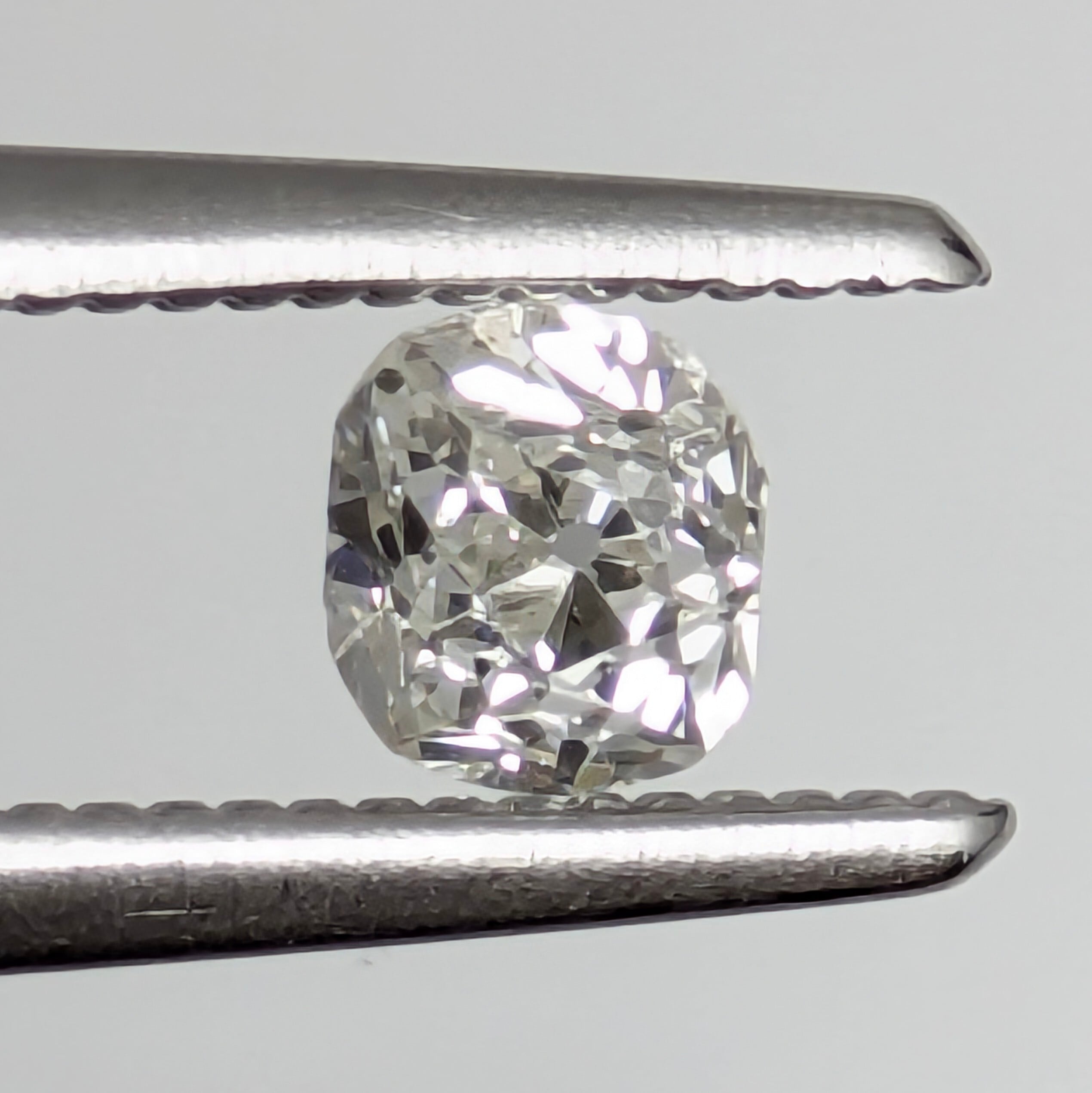 カット表記は「クッションブリリアントカット」なのですが、ほぼアンティークカット寄りのコロコロとした形が可愛い1粒。小さなテーブル面に大きめのキューレット、クラウンもパビリオンも高めです。その結果、虹色のブリリアンスと煌めきのシンチレーションのコンビネーションが爆発した美しい1ピースになっています。王道のクッションカットが欲しい方よりも、オールドマイン系をお探しの方にお勧め。レトロな雰囲気も併せてお楽しみください。