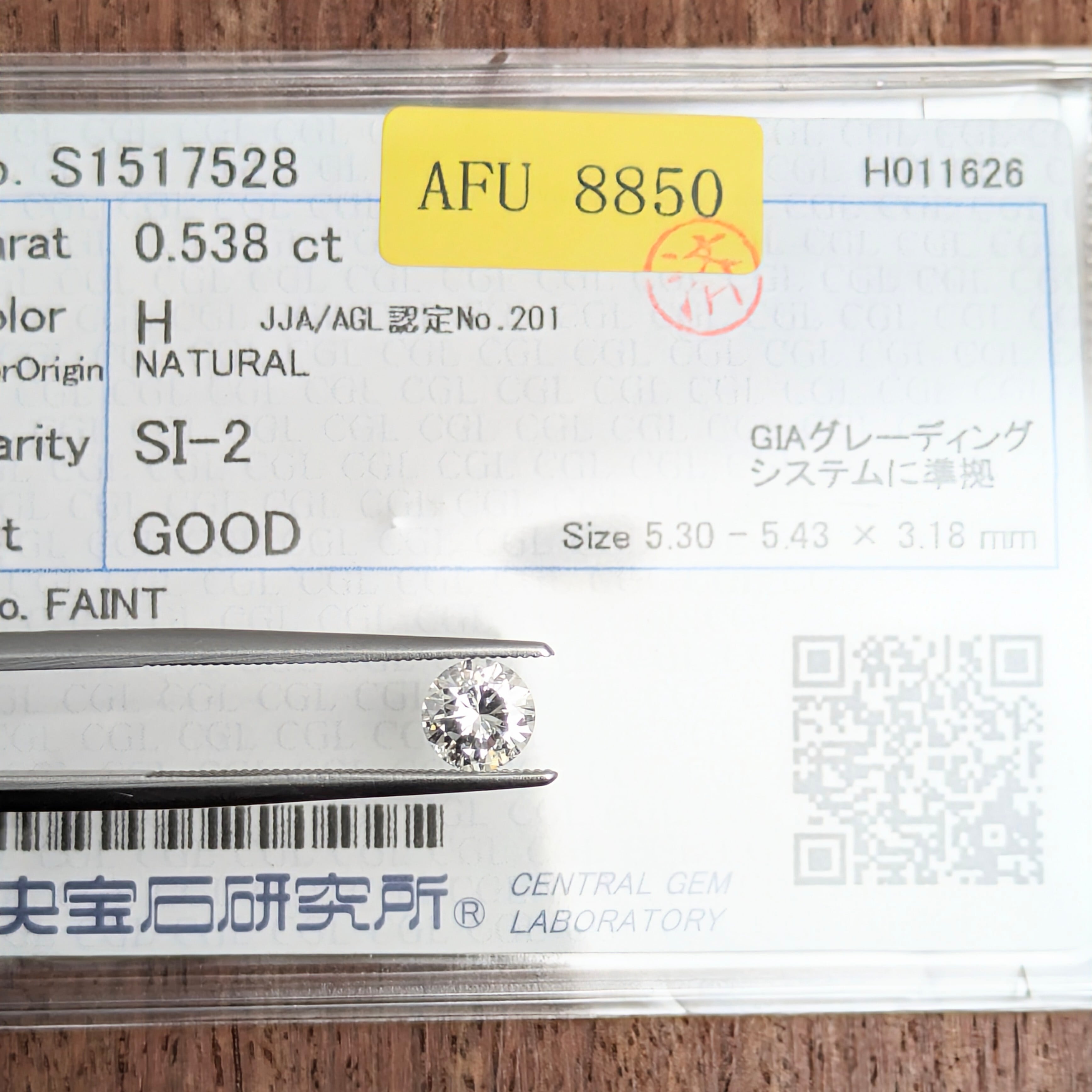 付属品:H SI2 GOOD 中宝研鑑定書・宝石の内部世界レポート