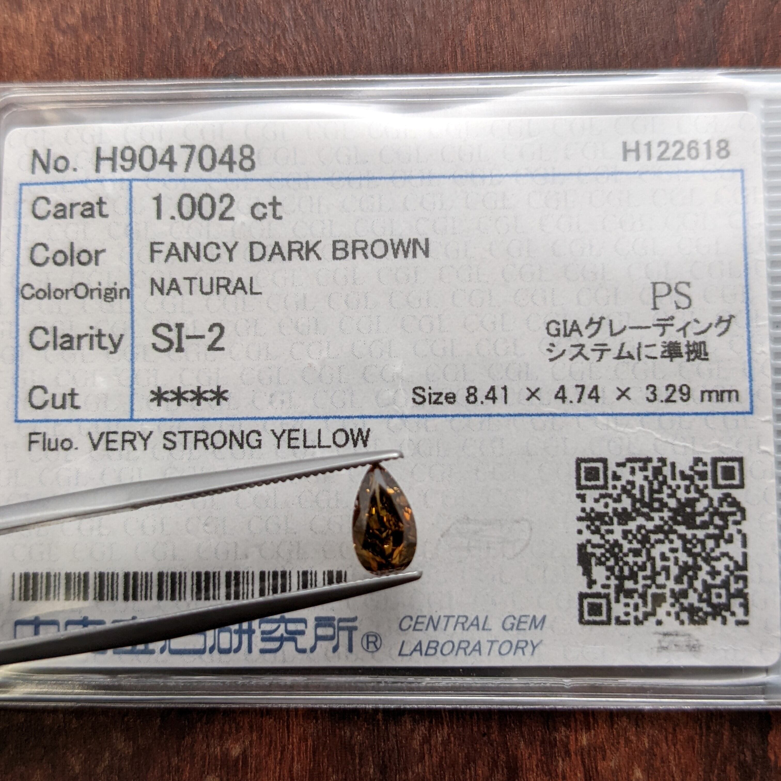 付属品:Fancy Dark Brown SI2 PEAR 中宝研ソーティング