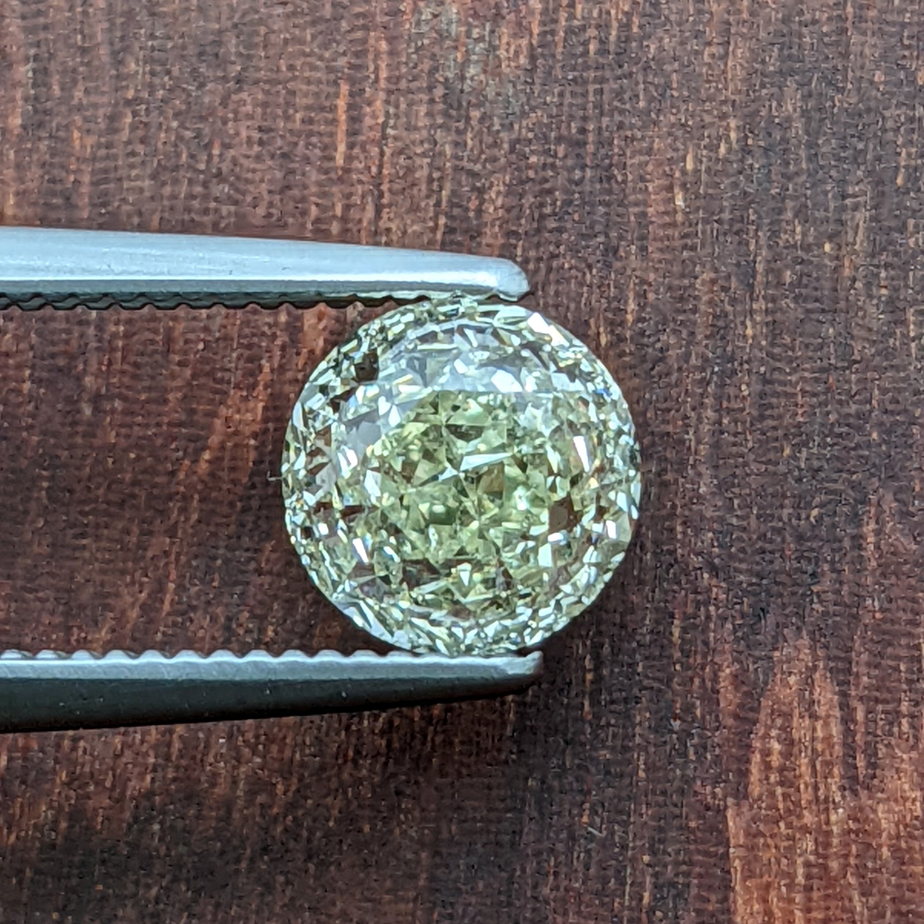 とても不思議なこのカット!ラウンドモディファイドカットの大粒ダイヤ!キラキラで、ころんとした可愛らしいダイヤです!コレクター向けですよ!
