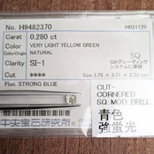 付属品:VERY LIGHT YELLOW GREEN SI1 CUT-CORNERED SQ. MOD. BRILL 中宝研ソーティング