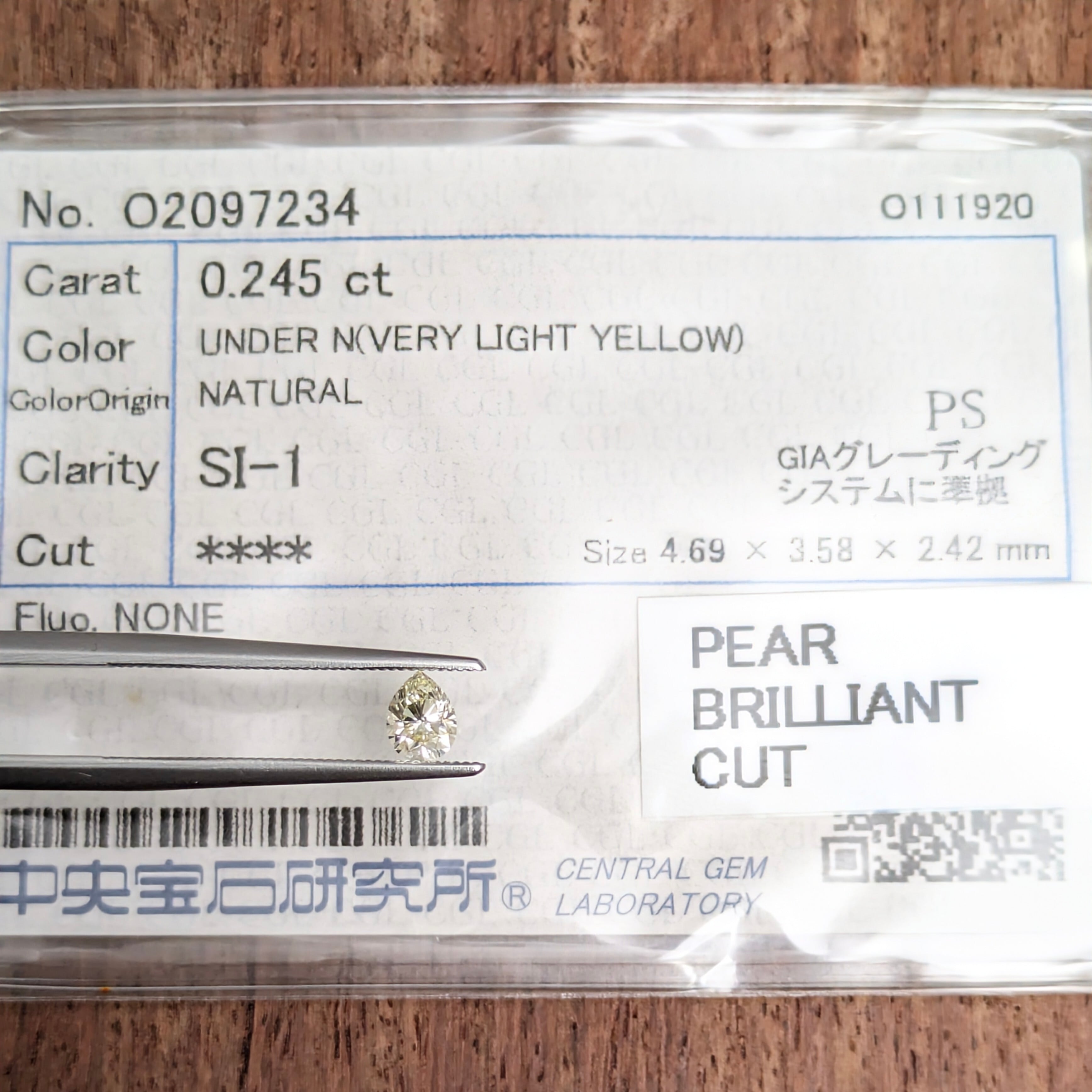 付属品:VERY LIGHT YELLOW SI1 PEAR BRILLIANT CUT 中宝研ソーティング