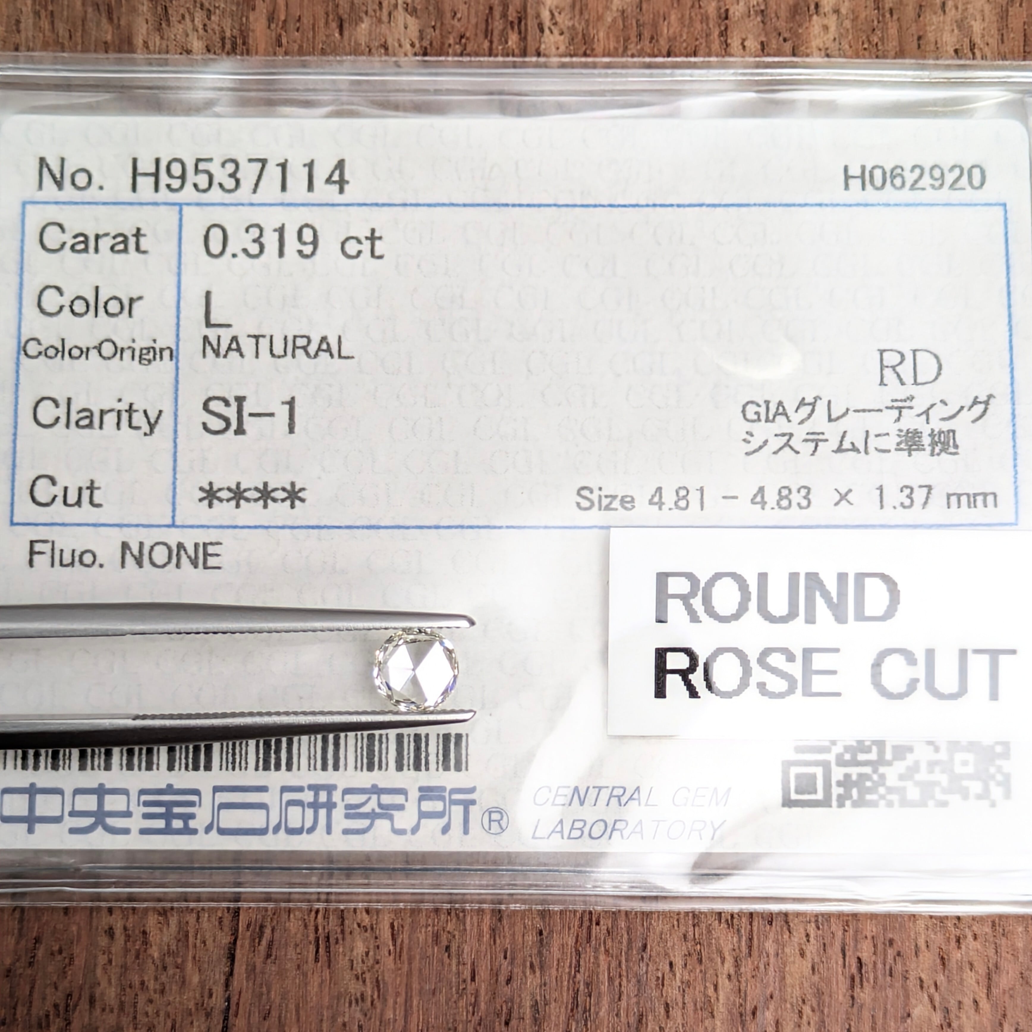 付属品:L SI1 ROUND ROSE CUT 中宝研ソーティング