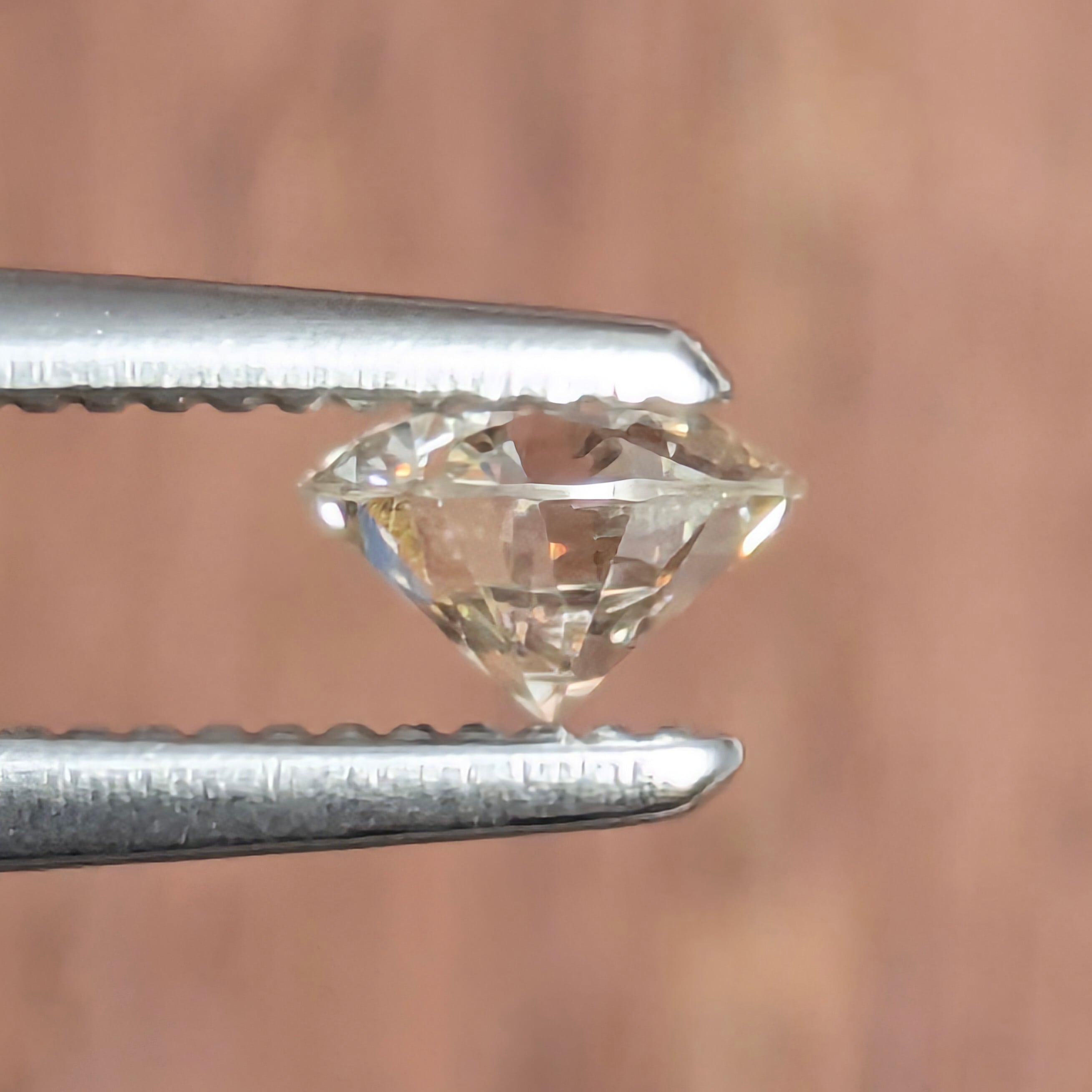 薄いブラウン系のダイヤモンドは、実イエロー系のダイヤモンドよりも肉眼ではその色味を感じにくいです。SI-2ですが肉眼で気になるようなものではなく、カットが良いので輝きが強い1PCSです。