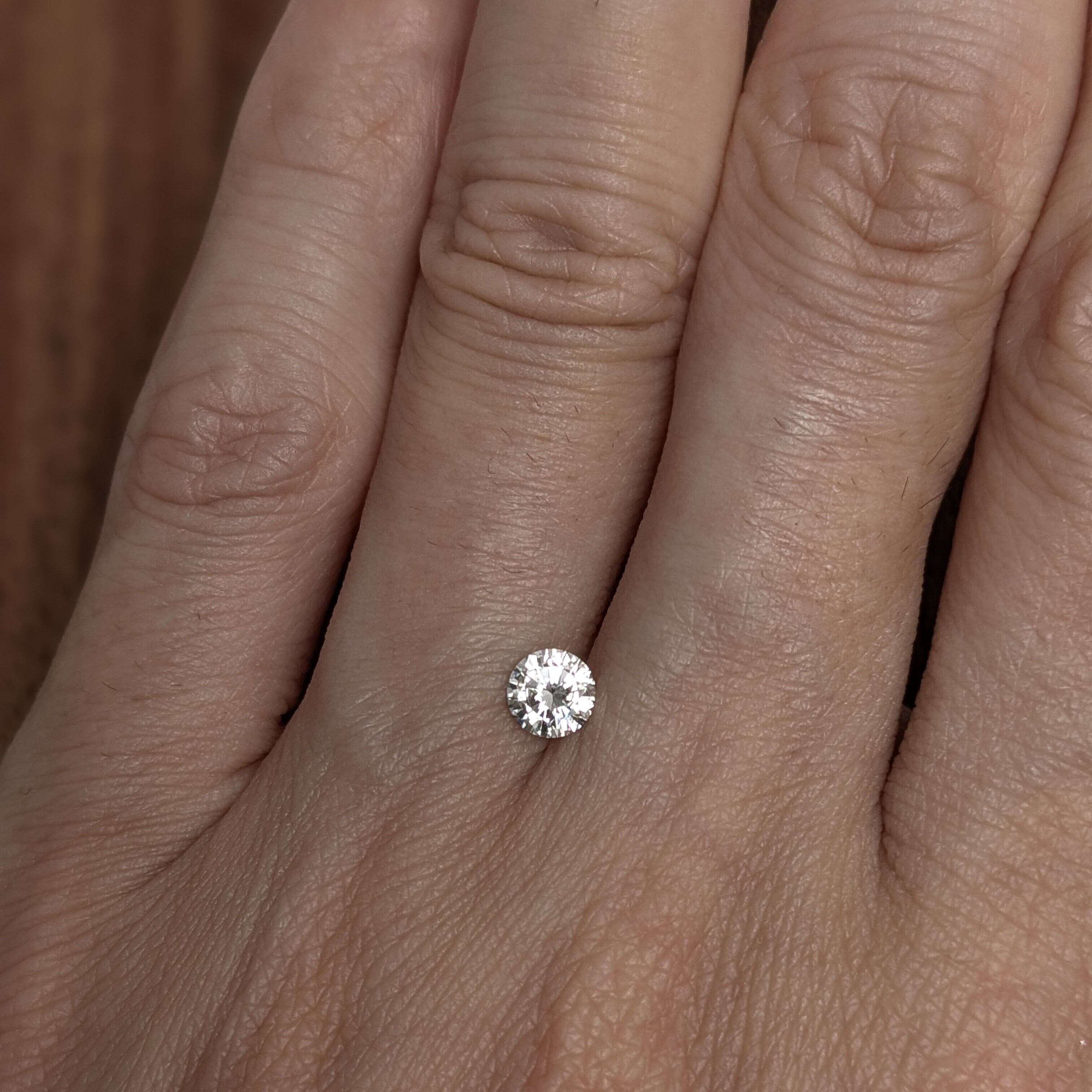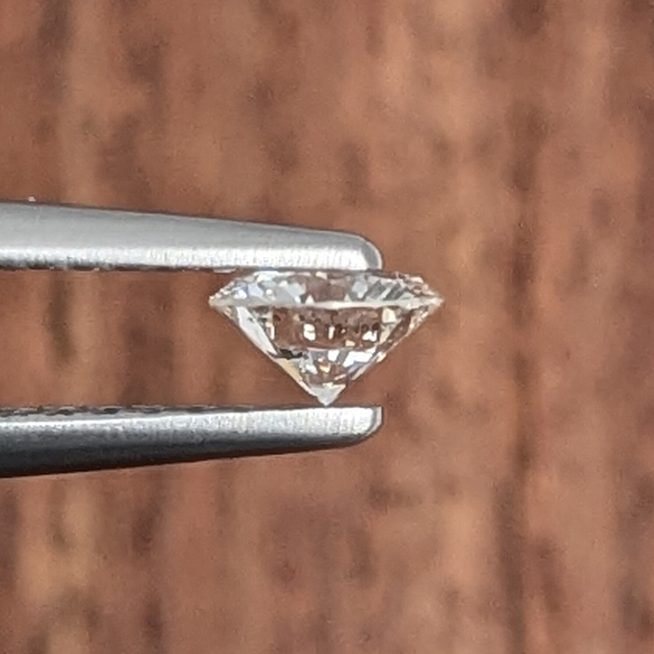 テーブル面の端からベゼルファセットにかけて、フェザーが入っています。カットが良いのと、インクルージョンのレリーフが薄いこともあり、I-1ですがかなり輝きが強く綺麗な1ピースです。