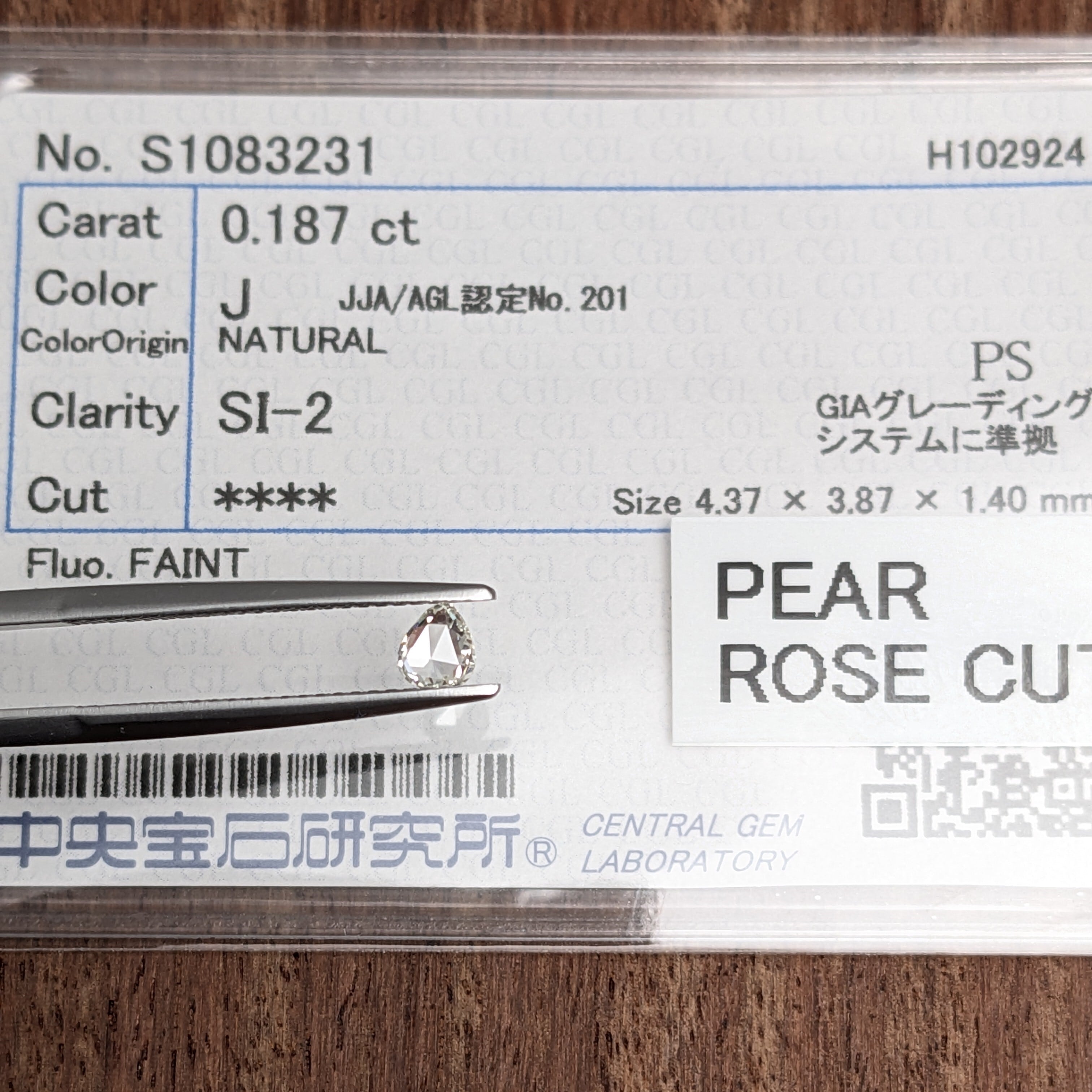 付属品:J SI2 PEAR ROSE CUT 中宝研ソーティング